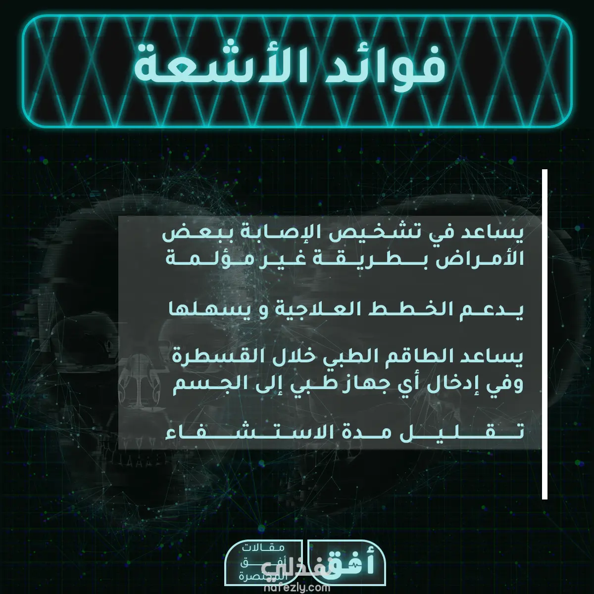 مجموعة صورية لمنصة انستغرام عن موضوع بحثي لجامعة سعودية: حقائق مدهشة عن علم الآشعة.