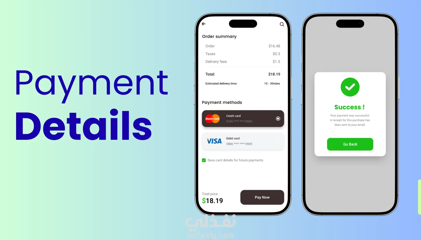 هذا العمل عبارة عن تصميم واجهة مستخدم (UI) لشاشات الدفع داخل تطبيق موبايل، يهدف إلى تقديم تجربة دفع بسيطة وواضحة تساعد المستخدم على إتمام عملية الشراء بسهولة وثقة. يركز التصميم على عرض تفاصيل الطلب وطرق الدفع بطريقة منظمة، مع إبراز العناصر الأساسية مثل المبلغ الإجمالي وخيارات الدفع وأزرار التفاعل بشكل واضح. تم تصميم الواجهة لتقليل التعقيد أثناء عملية الدفع، حيث يتم عرض المعلومات خطوة بخطوة بشكل يسهل على المستخدم مراجعة طلبه واختيار وسيلة الدفع المناسبة بسرعة. كما تم إضافة شاشة تأكيد الدفع لإعطاء المستخدم إحساسًا بالوضوح والاطمئنان بعد إتمام العملية بنجاح. اعتمد التصميم على مبادئ تصميم واجهات وتجربة المستخدم (UI/UX) مع التركيز على البساطة والتسلسل البصري الواضح للعناصر. تم تنظيم المحتوى بطريقة تسهّل قراءة المعلومات المهمة، مع إبراز أزرار التفاعل والعناصر الأساسية لضمان تجربة استخدام سلسة ومريحة أثناء إتمام عملية الدفع داخل التطبيق.