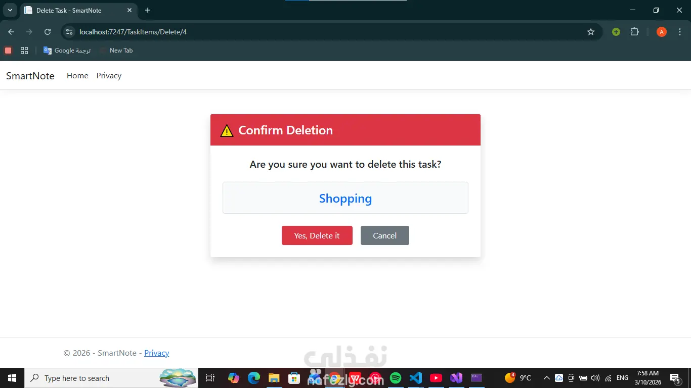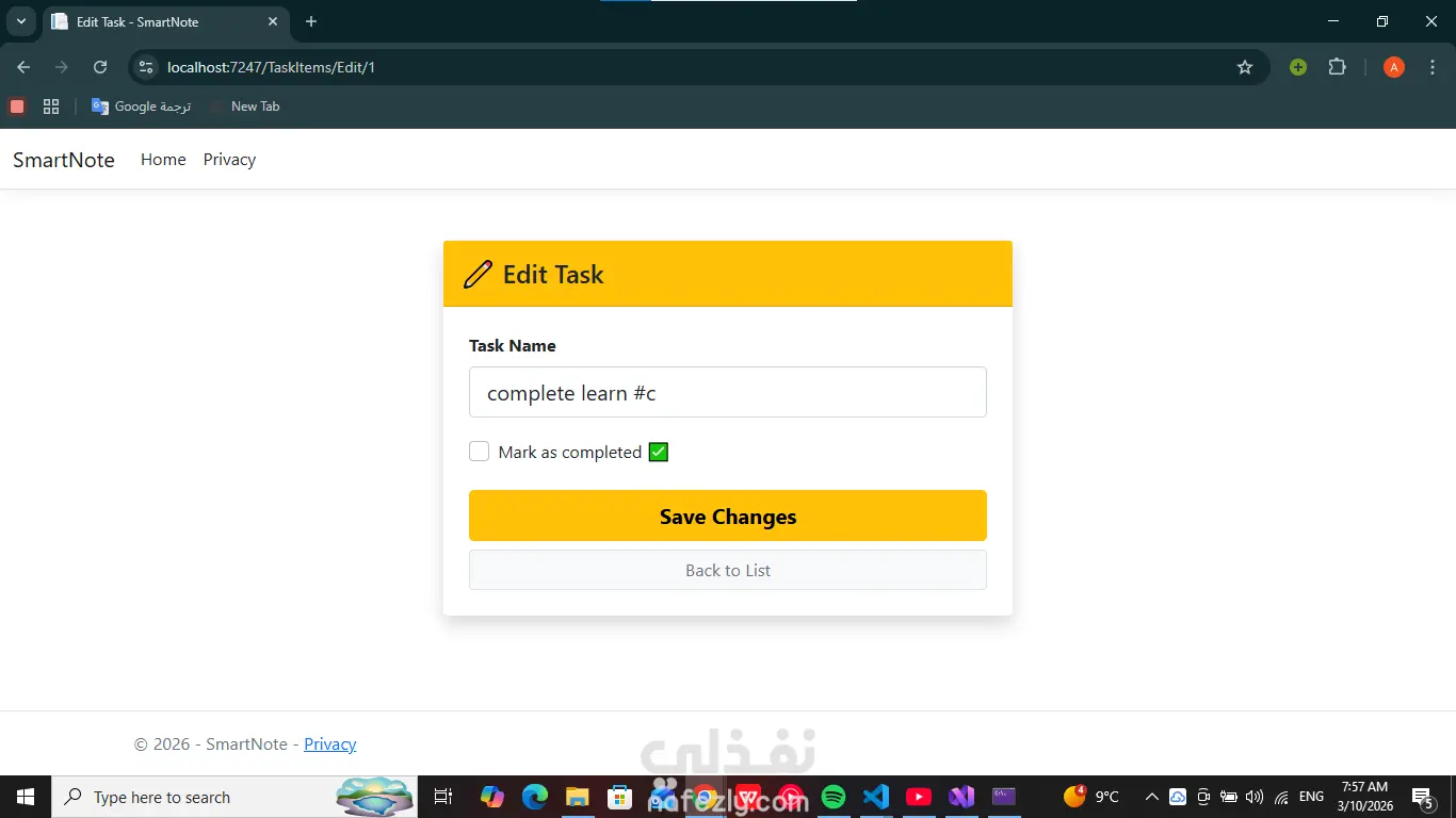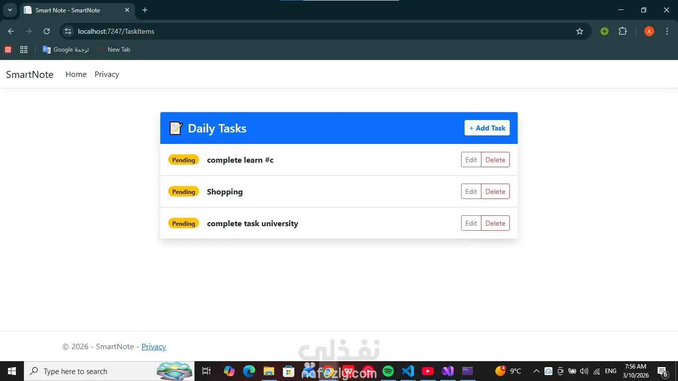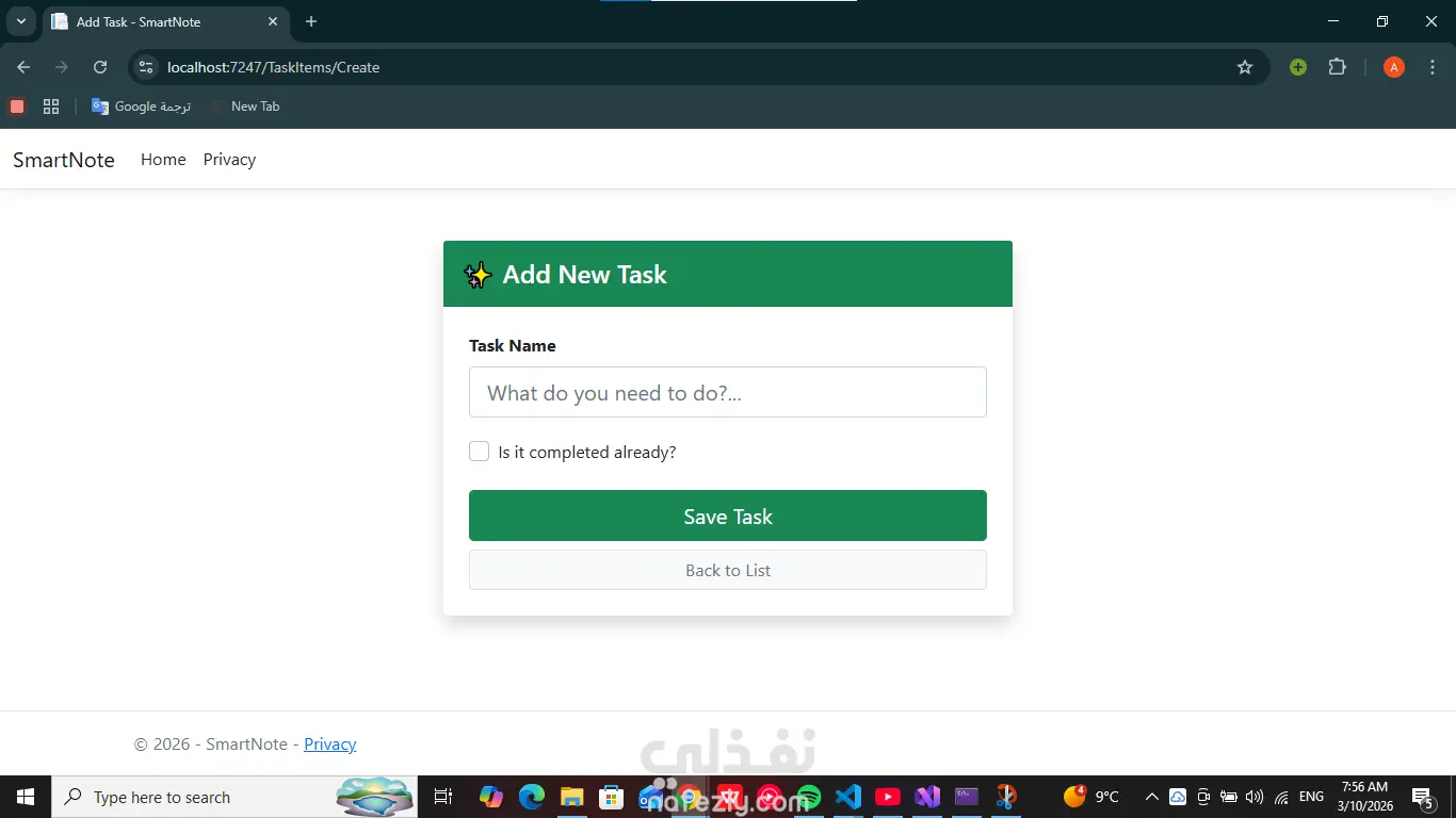 برمجة وتطوير نظام إدارة مهام ذكي (Smart Note) باستخدام ASP.NET Core MVC