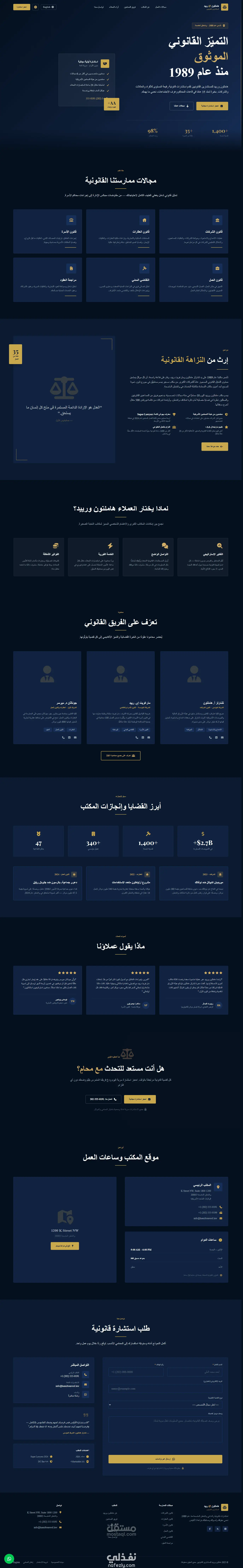 واجهة موقع قانوني احترافية لمكتب محاماة عربي