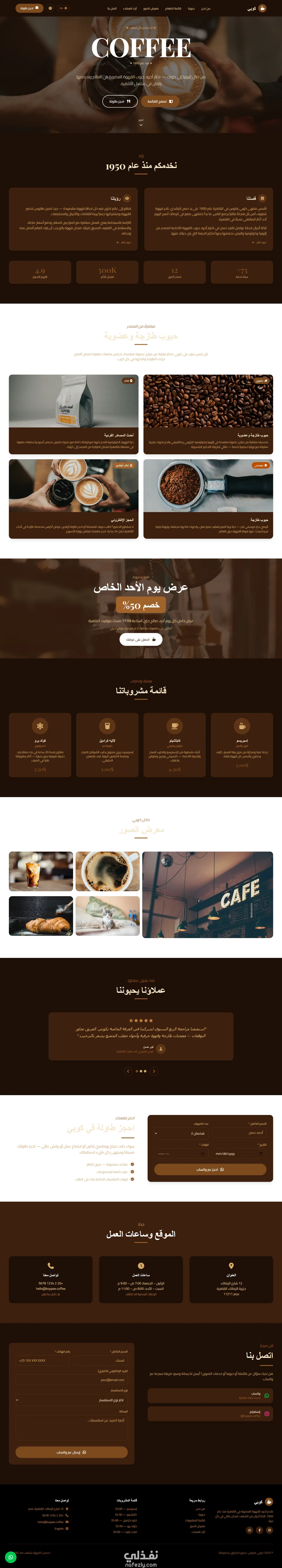 واجهة موقع مقهى احترافية لعرض المنيو والحجز والتواصل