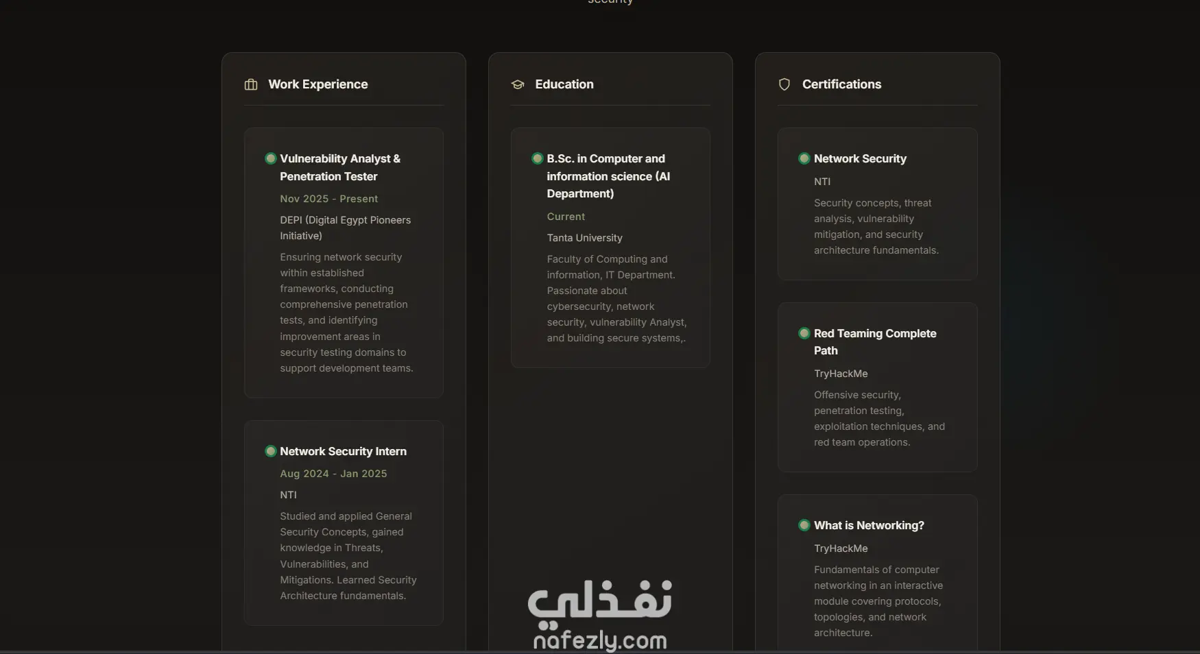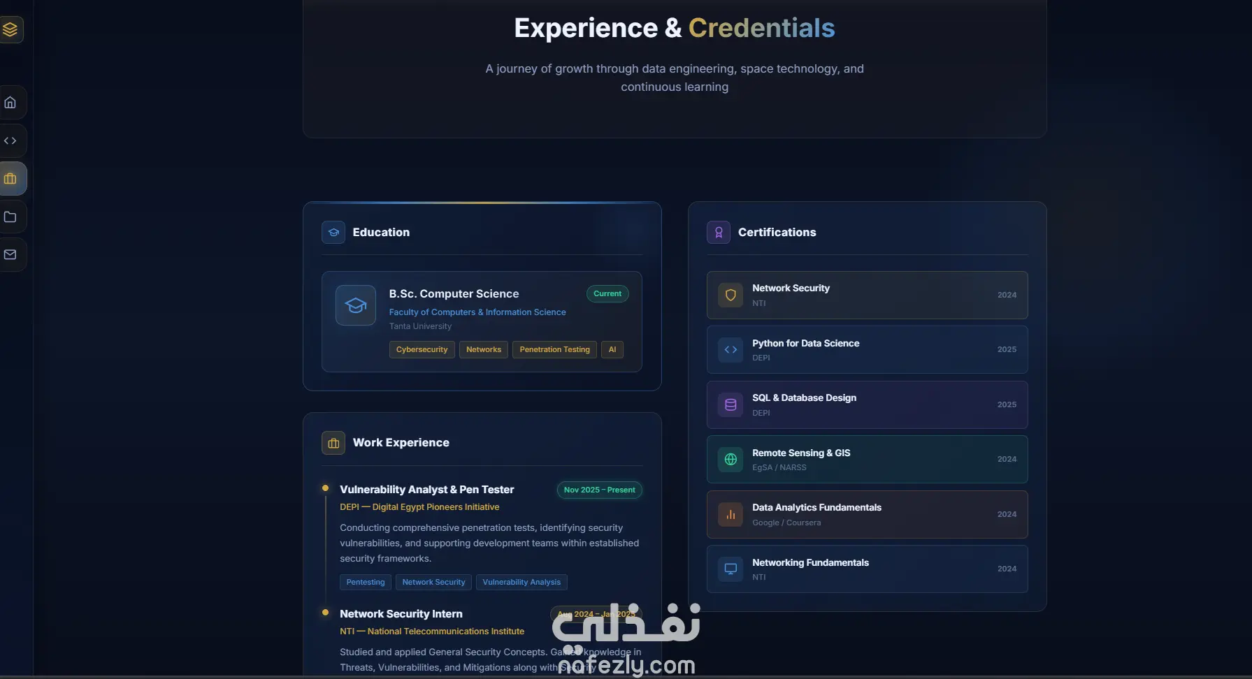 أنا سأقوم بتصميم Portfolio احترافي وصفحة تعريف شخصية إلكترونية بتصميم عصري وجذاب بلغات برمجه html,css,javascript يعرض أعمالك ومشاريعك بشكل منظم وواضح. سأعمل على إنشاء بورتفوليو مميز يعكس هويتك المهنية ويبرز مهاراتك وخبراتك باستخدام تصميم حديث ومتجاوب يعمل على جميع الأجهزة (كمبيوتر – موبايل – تابلت). سواء كنت مطور، مصمم، فريلانسر، أو طالب وتريد عرض مشاريعك بشكل احترافي، سأساعدك في إنشاء صفحة Portfolio تساعدك على إبراز أعمالك بشكل قوي واحترافي.
