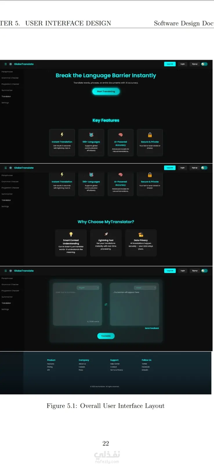 تم تصميم النظام بواجهة سهلة الاستخدام لتسهيل عملية إدخال النصوص والحصول على الترجمة بسرعة. يهدف المشروع إلى مساعدة المستخدمين في فهم النصوص بلغات مختلفة وتحسين التواصل بين اللغات.