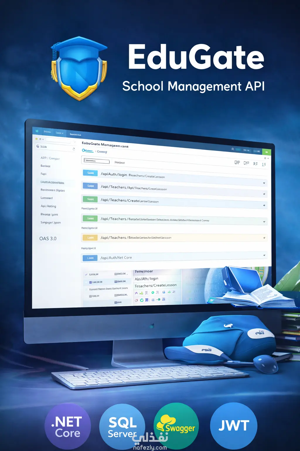 قمت بتطوير Backend API لنظام إدارة المدارس (EduGate) باستخدام ASP.NET Core Web API. النظام مصمم لإدارة العملية التعليمية بشكل كامل ويخدم عدة أنواع من المستخدمين مثل: الطلاب، المعلمين، أولياء الأمور، ومديري المدارس. المميزات الرئيسية للنظام: * نظام تسجيل وتسجيل دخول مع JWT Authentication * دعم التحقق عبر البريد الإلكتروني و OTP * نظام Two Factor Authentication (2FA) * إدارة المدارس والمراحل التعليمية والفصول * إدارة حسابات الطلاب والمعلمين وأولياء الأمور * نظام الحضور والدرجات للطلاب * إدارة الدروس والمرفقات الخاصة بالمعلمين * لوحة تحكم لمدير النظام لإدارة المدارس * واجهات API منظمة باستخدام RESTful Architecture * توثيق كامل للـ API باستخدام Swagger التقنيات المستخدمة: * ASP.NET Core Web API * C# * Entity Framework Core * SQL Server * JWT Authentication * Swagger API Documentation تم تصميم النظام ليكون قابل للتوسع وسهل التكامل مع تطبيقات الويب أو تطبيقات الموبايل.