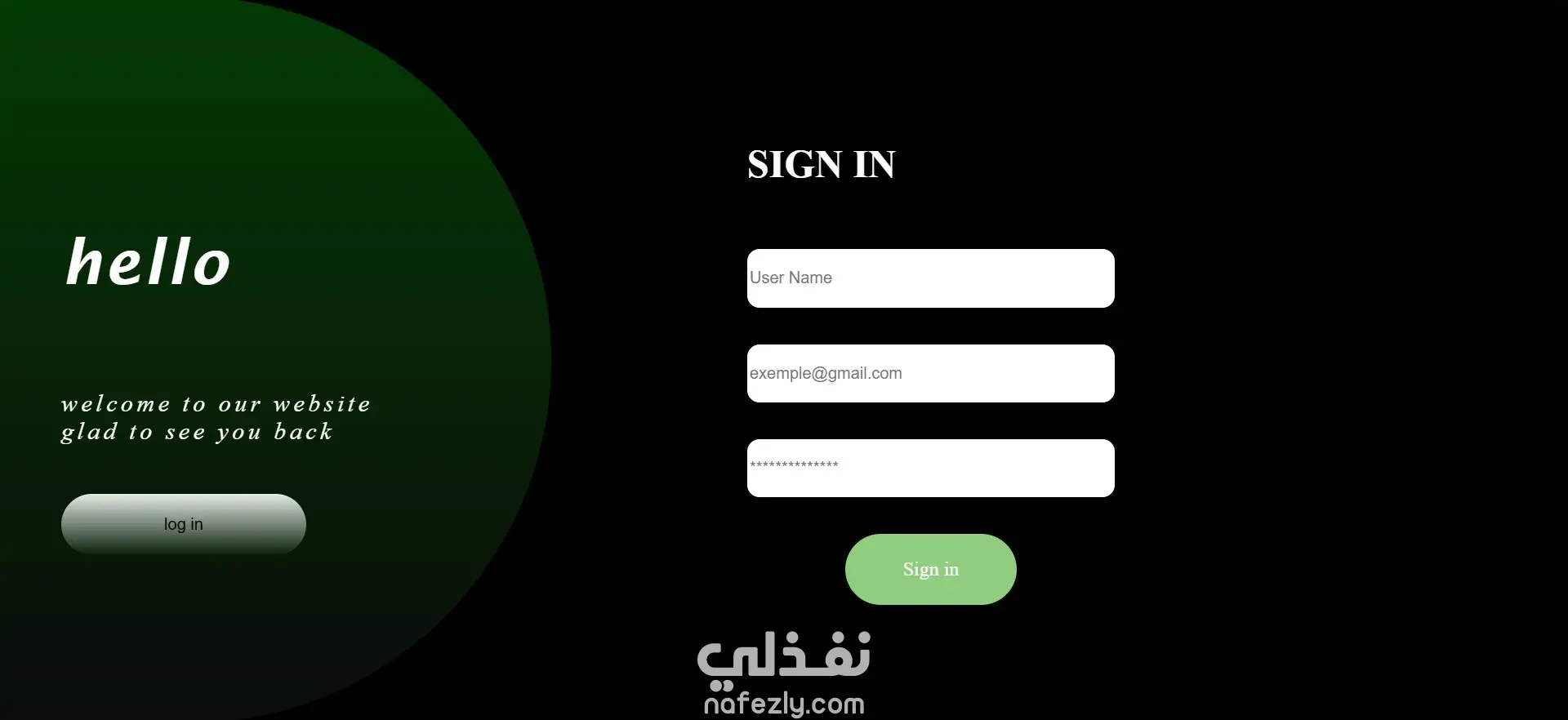 صفحة تسجيل الدخول وإنشاء حساب مع واجهة أمامية متحركة.