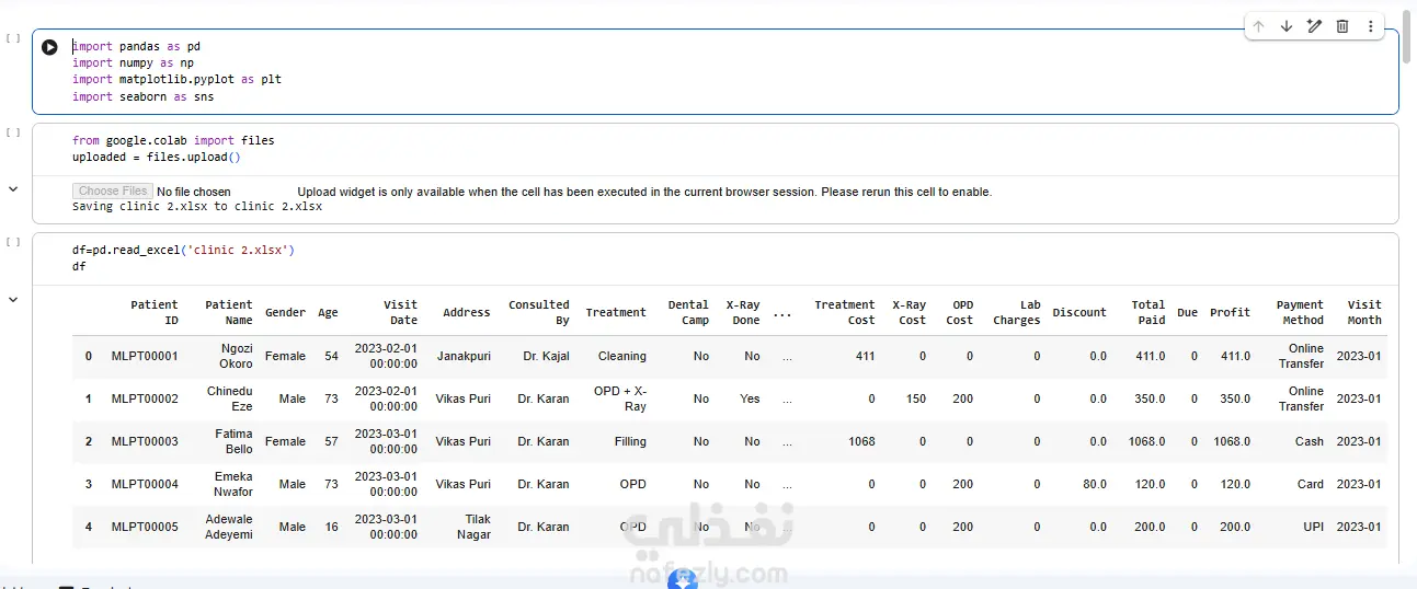 تحليل بيانات عيادة طب أسنان باستخدام Python - استخراج مؤشرات الأداء والربحية