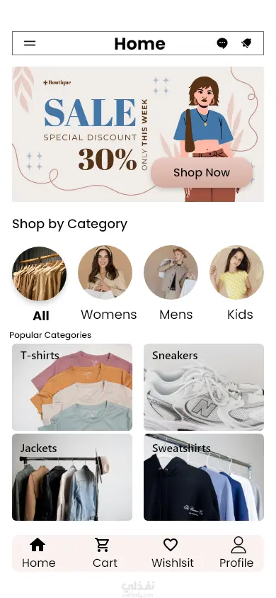 تصميم تطبيق تسوق ملابس للموبيل