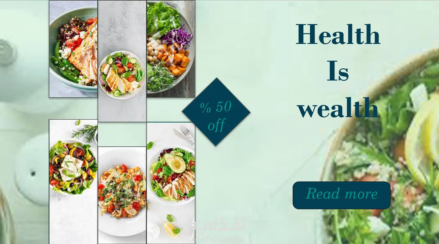 التوازن البصري: استخدمت أسلوب "الكولاج" (Collage) المنظم لعرض صور أطباق متنوعة، مما يعطي إحساساً بالتعدد والوفرة في الخيارات الصحية.