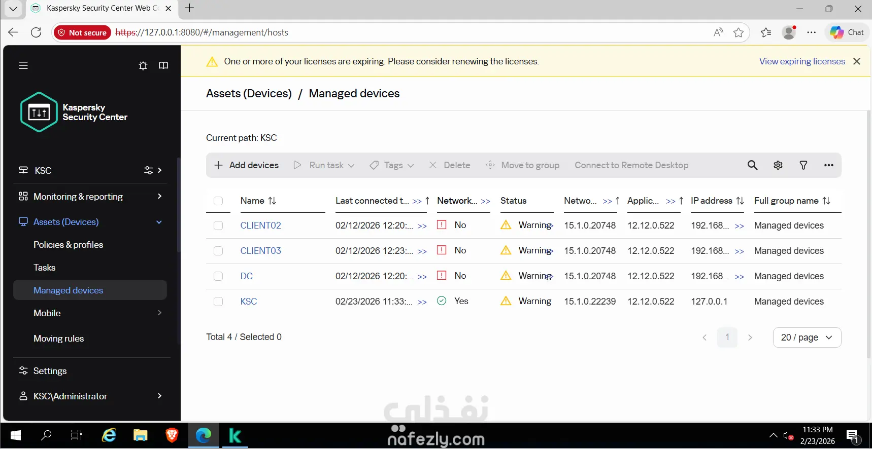 مراقبة وتحليل التنبيهات الأمنية وحماية أجهزة المستخدمين باستخدام Kaspersky Solutions