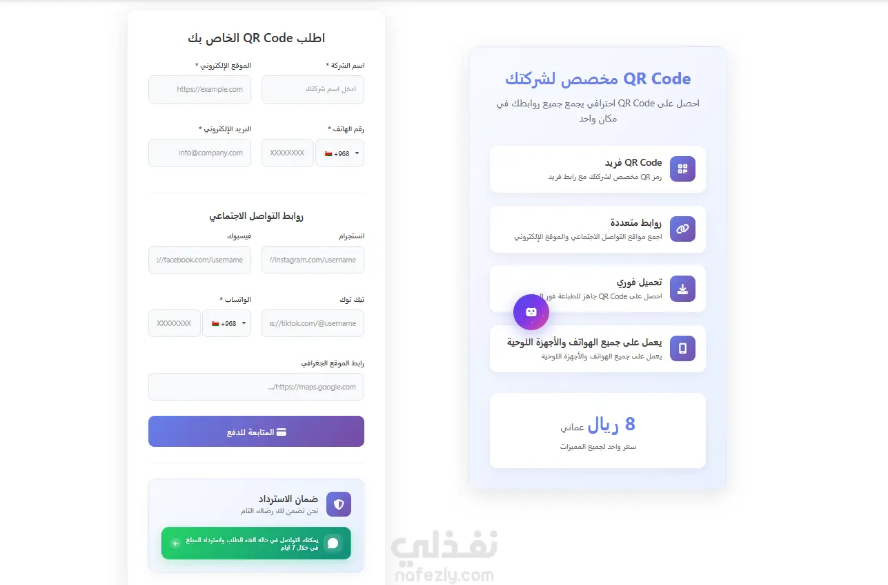 موقع لشركه عمانيه متخصصه في Digital Markting موقع لعرض الاعمال ويوجد به ميزه QR-Code Generation وتسجيل دخول للعملاء مع ميزه AI-Bot