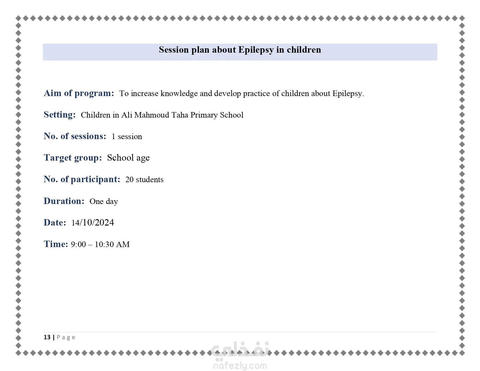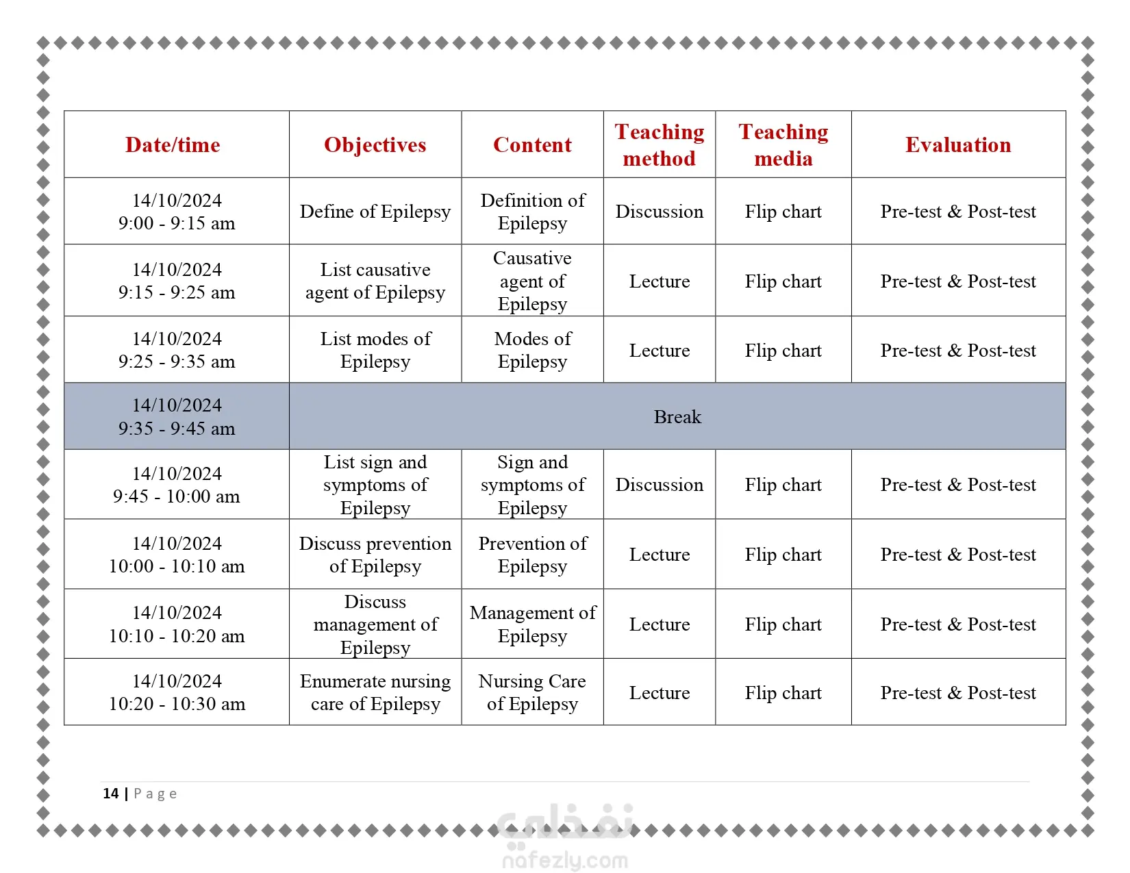 عمل flip chart مبسط عن موضوع الصرع