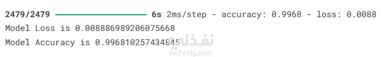 تصميم نموذج DNN لتصنيف تأخيرات الطقس تم بناء نموذج شبكة عصبية عميقة باستخدام Keras لتصنيف تأخير الرحلات بسبب الطقس (تصنيف ثنائي). معمارية النموذج باختصار: Dense (8) – tanh Dropout (0.1) Dense (128) – sigmoid Dropout (0.2) Dense (64) – tanh Dense (32) – tanh Dropout (0.3) Dense (1) – sigmoid (طبقة الإخراج) إعدادات التدريب: Optimizer: AdamW learning_rate = 0.001 weight_decay = 0.004 Loss: Binary Crossentropy Epochs: حتى 100 Batch size: 10000 تقنيات تحسين التعميم: استخدام Dropout بنسب مختلفة EarlyStopping (patience=10) مع مراقبة val_accuracy واسترجاع أفضل الأوزان تم التركيز على تحقيق توازن بين الأداء والاستقرار وتقليل الـ Overfitting لضمان قدرة النموذج على التعميم بشكل جيد.