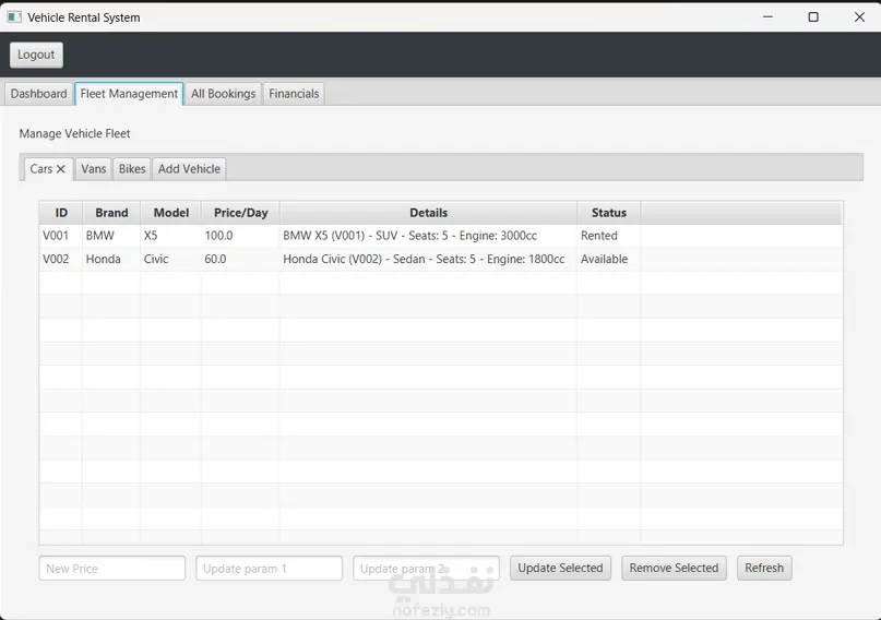 قُدت فريق عمل لتطوير تطبيق مكتبي متكامل لتأجير المركبات باستخدام لغة (Java) ومعمارية (MVC). قمت بتصميم هيكل النظام مبكراً باستخدام مخططات (UML) ، وبرمجة الواجهة الخلفية الأساسية، وتحديداً الفئات (Vehicle) و(Admin) بالاعتماد الصارم على مفاهيم البرمجة كائنية التوجه (OOP). كما ساهمت في ضمان استقرار النظام عبر معالجة الاستثناءات (Exception Handling) ودعم اختبارات الوحدة (Unit Testing)