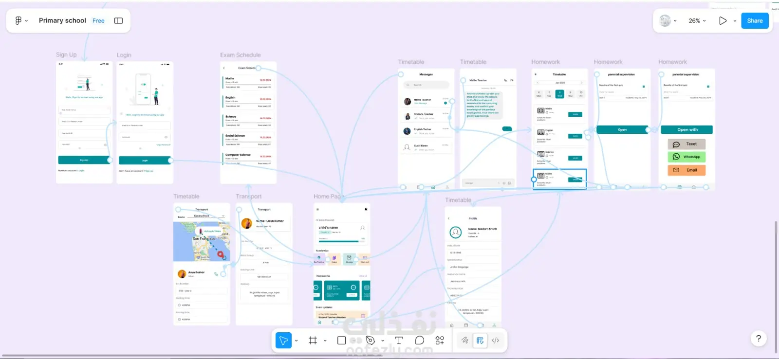تصميم ديزاين UI/UX لمنصة مدرسة ابتدائية متكاملة
