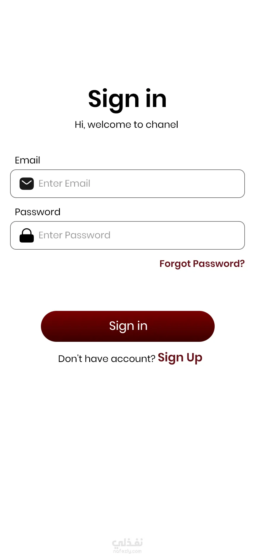 شاشة تسجيل الدخول (Sign in) تم تصميم واجهة تسجيل الدخول للتطبيق بأسلوب بسيط وحديث يركز على سهولة الاستخدام. تحتوي الشاشة على حقول إدخال البريد الإلكتروني وكلمة المرور مع خيار استعادة كلمة المرور، بالإضافة إلى زر تسجيل الدخول وزر الانتقال لإنشاء حساب جديد. تم الاهتمام بتناسق الألوان وترتيب العناصر لتوفير تجربة مستخدم واضحة وسلسة.