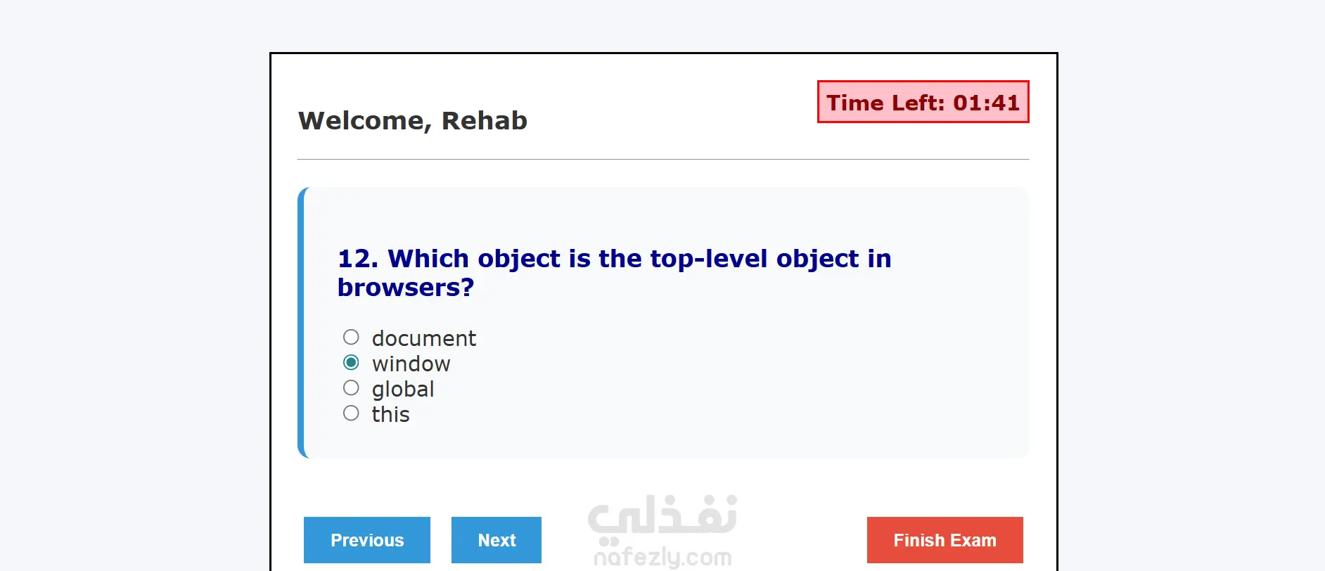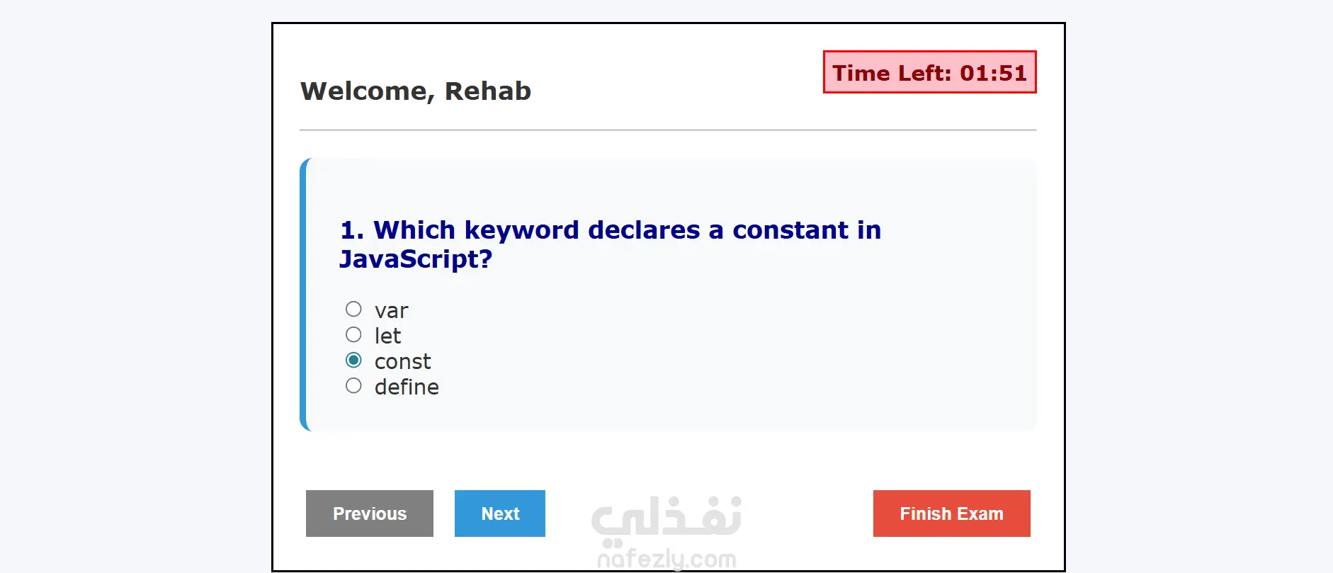 تصميم موقع اختبار إلكتروني عن الجافا سكريبت