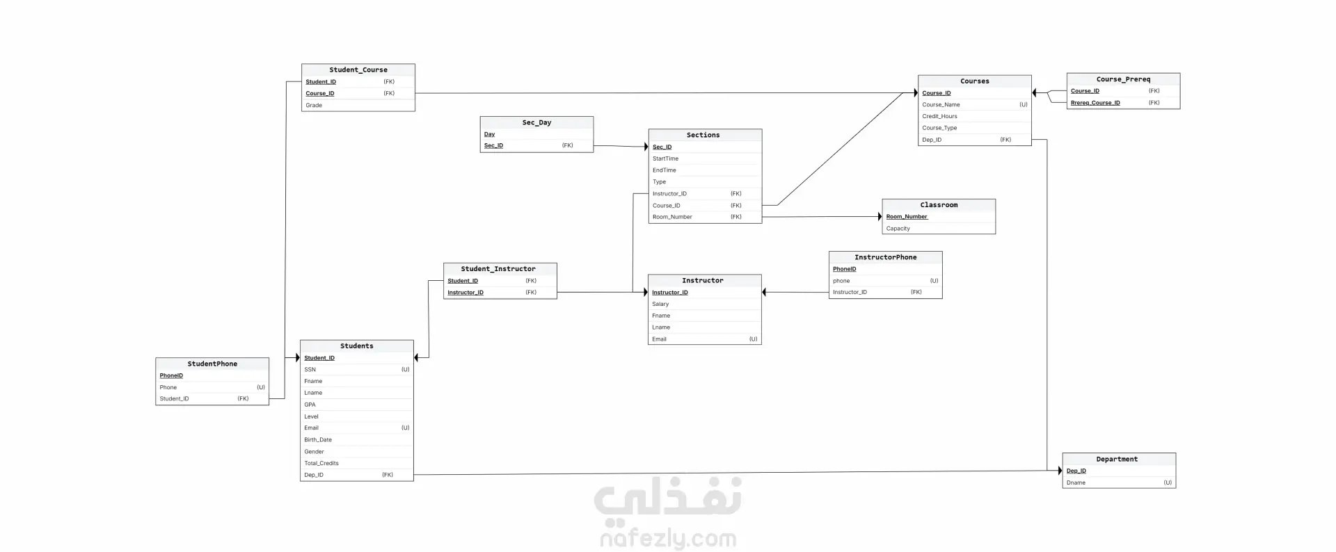 Enrollment Management: Register students in courses, track their enrollment history, and prevent conflicts.