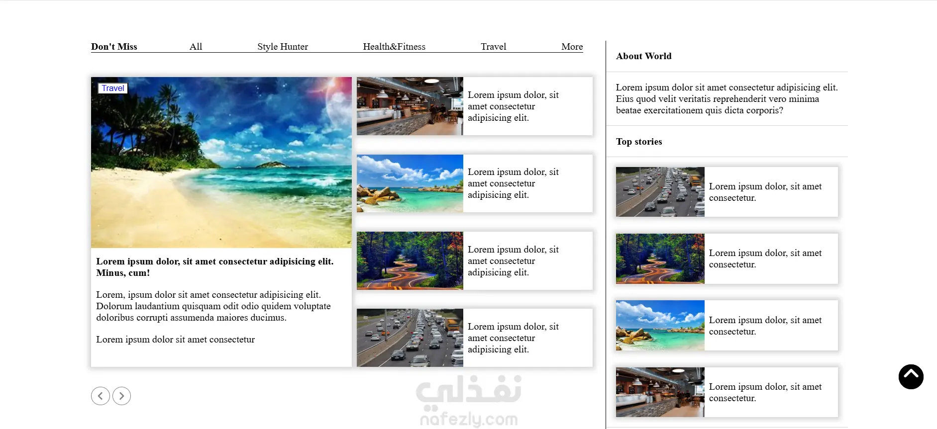 صفحة سفر متجاوبة مصممة لعرض الوجهات بطريقة جذابة بصريًا ومنظمة. تم استخدام : html , css