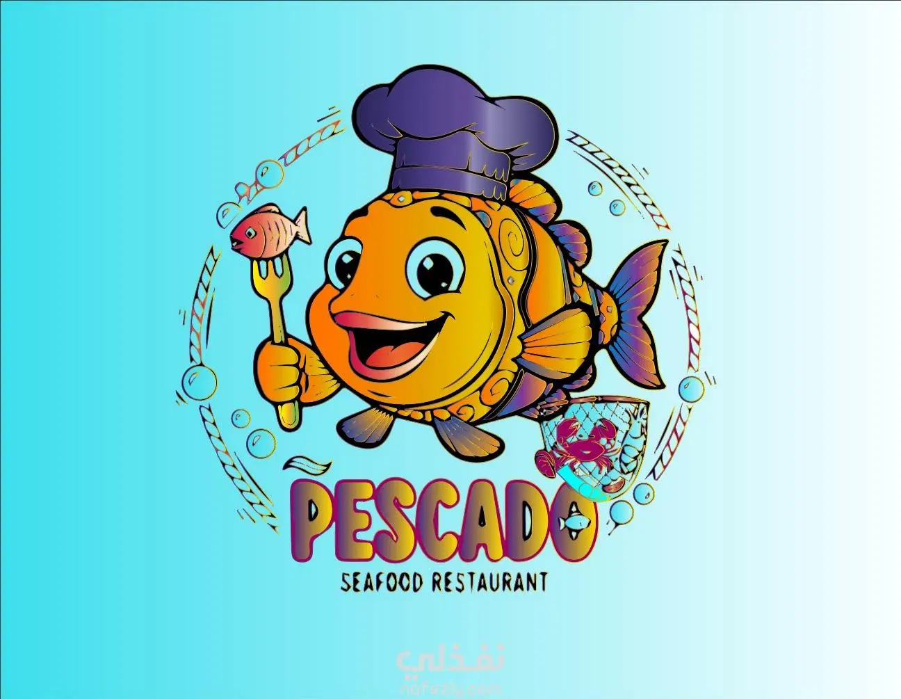 لوجو لمطعم مأكولات بحرية logo design for seafood restaurant