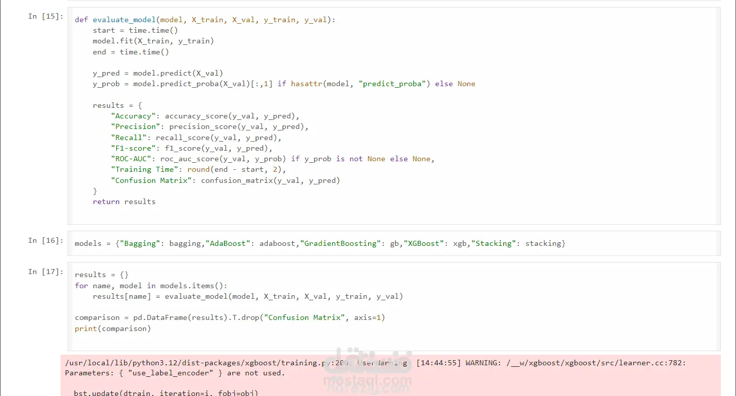 Implemented and compared multiple ensemble machine learning models (Bagging, AdaBoost, Gradient Boosting, XGBoost, and Stacking) to predict the presence of heart disease. The project included preprocessing, feature scaling, and model evaluation using metrics such as accuracy, precision, recall, F1-score, ROC-AUC, and confusion matrix. Results highlighted the trade-offs between accuracy and training time across different algorithms.