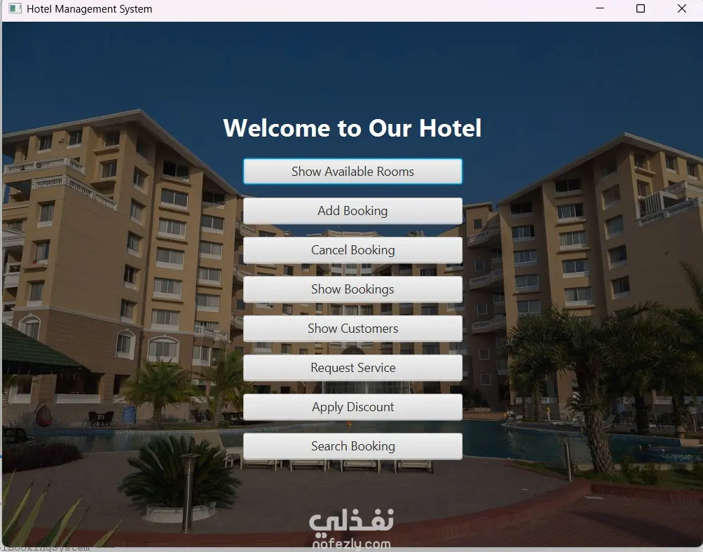 نظام متكامل لحجز الفنادق بواجهة رسومية متطورة (JavaFX Desktop App)