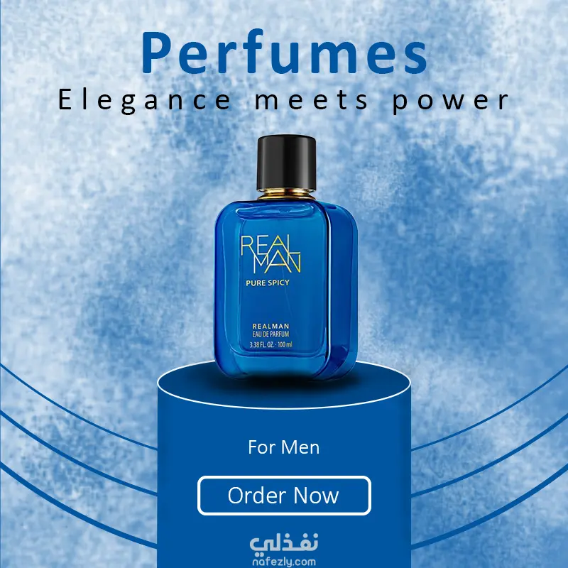 مشروع تصميم إعلاني لعطر (Real Man). التحدي كان في إظهار التباين بين النص الذهبي الفخم والخلفية الباردة، مع خلق عمق بصري يبرز تفاصيل الزجاجة مع التركيز على الموازنة بين القوة و الرقى. التكوين البصري (Composition): اعتمدت على وضع المنتج فوق منصة دائرية لإعطائه شعورا بالسيادة والفخامة مع توزيع الخطوط المنحنية في الخلفية لتوجيه عين المشاهد مباشرة نحو مركز التصميم (الزجاجة). الألوان: تم اختيار لوحة ألوان Monochromatic من درجات الأزرق العميق لتعزيز شعور الثقة والانتعاش، مع الحفاظ على التباين العالي الذي يبرز التفاصيل الذهبية داخل الزجاجة. الضوء والظل: اهتممت بتوزيع الإضاءة على جوانب الزجاجة والمنصة لخلق عمق بصري (Depth) يجعل التصميم يبدو واقعيا وليس مجرد صورة مسطحة. الكتابة (Typography): اخترت خطوطا عريضة (Bold) لعنوان "Perfumes" لتعكس القوة، بينما تم استخدام خطوط أكثر انسيابية ورفقا في الشعار الجانبي لإضافة لمسة من "الأناقة" التي يتحدث عنها التصميم. حرصت على ترك مساحات تنفس كافية حول المنتج لضمان عدم تشتت المشاهد والحفاظ على الطابع "البريميوم" للإعلان. - تم تصميمه باستخدام Adobe Photoshop