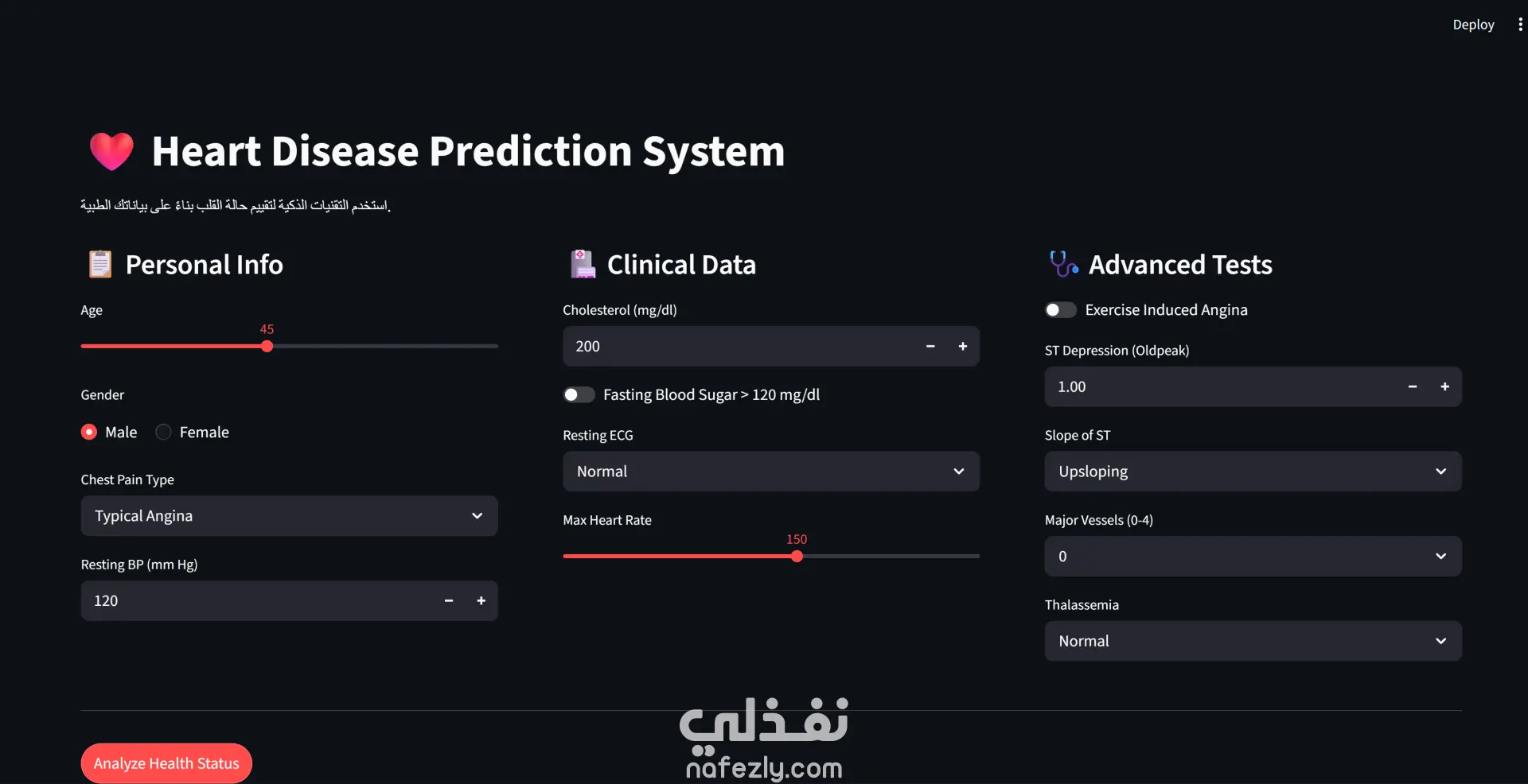• Deployment: بناء واجهة مستخدم تفاعلية باستخدام Streamlit توفر نتائج فورية ونسبة مئوية لاحتمالية الخطورة.