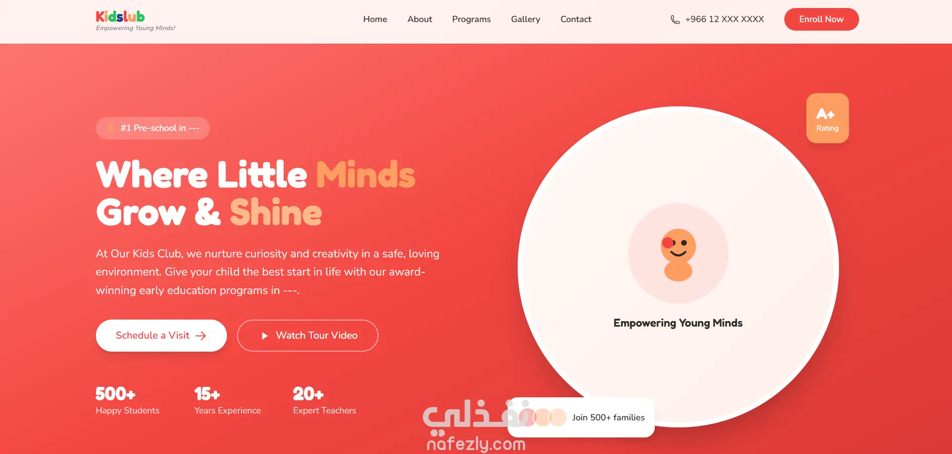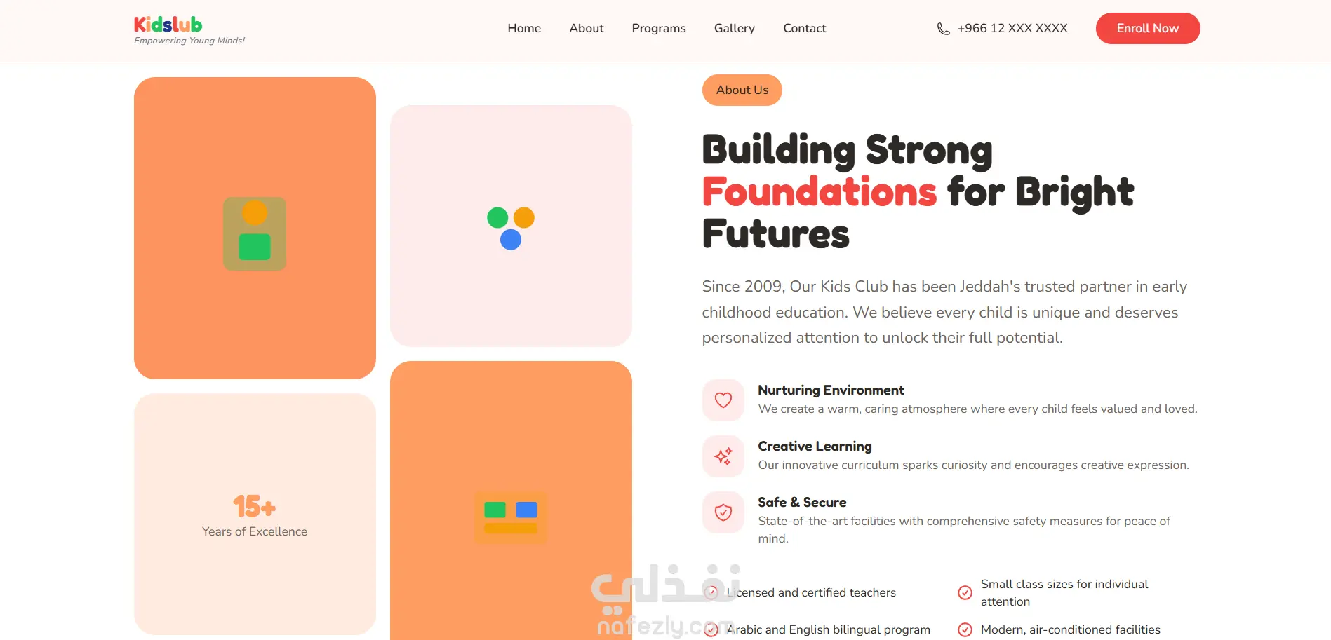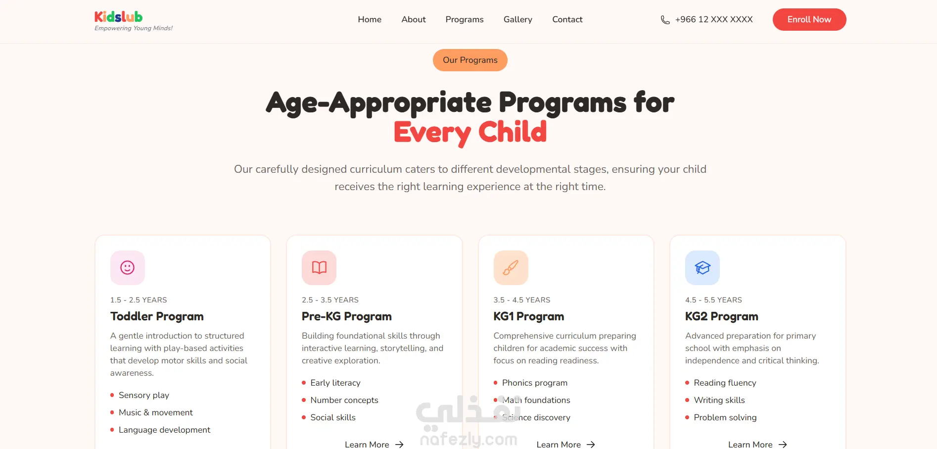 موقع انشأته لحضانة بالسعودية حيث - يمكن للاباء ان يتابعوا تقدم اولادهم - يمكن التقديم للاطفال في الحضانة عن طريق الموقع - عرض فعاليات الحضانة عن طريق الموقع - اظهار العروض الخاصه بالحضانة - متابعة الشكاوي و الرسائل