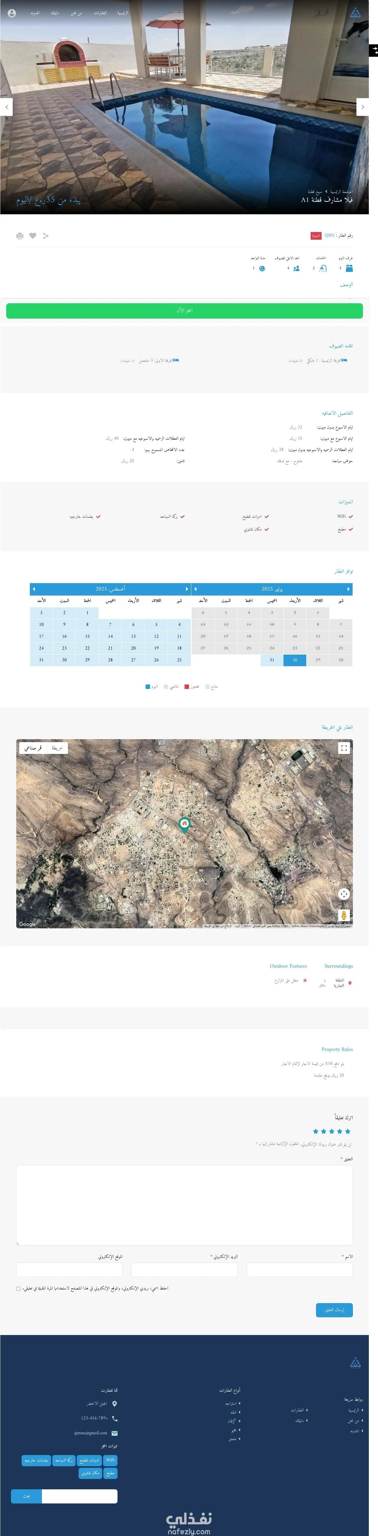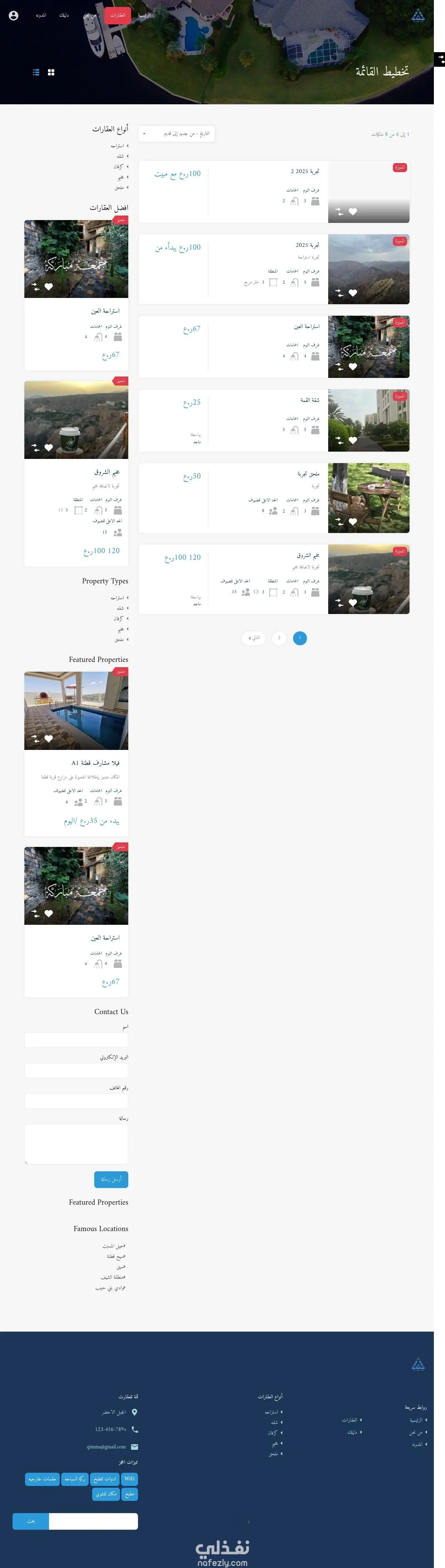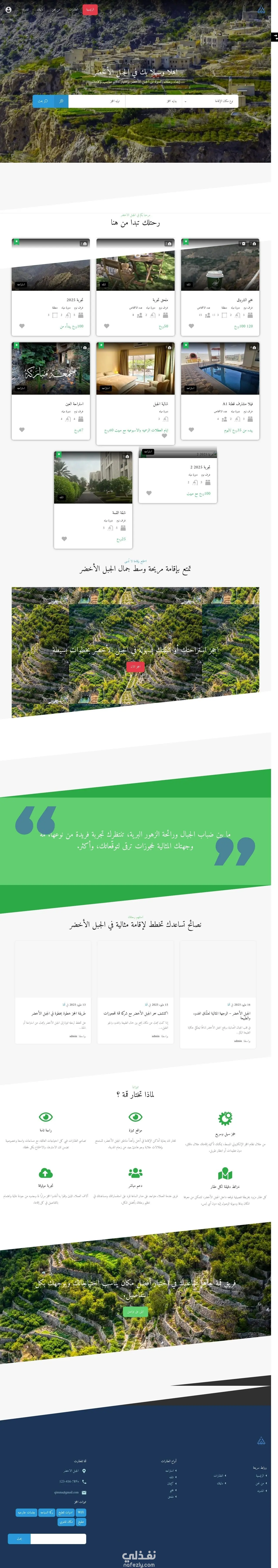 هذا العمل مميزه لانه تم إنشاء من الصفر هوا عباره عن موقع حجوزات في منطقه الجبل الاخضر بسلطنه عمان اول شي قمت بتنصيب الوردبريس علي الاستضافة وتجهيز بيئه العمل بلكامل - انشاء الصفحات الاساسيه ( الرئيسيه - من نحن - العقارات - دليلك - تواصل معنا ) - الصفحه الرئيسيه ( سلايدر احترافي لمنطقه الجبل الاخضر مع جمله مميز وزر CTA يؤدي مباشره علي العقارات - نموذج بحث متقدم من خلال نوع العقار وعدد الضيوف والمساحه - كروسول عرض لافضل العقارات علي الموقع - كروسول مع باك جراوند وزر CTA - عرض مميز مع ايقونات بعنوان ليه تختار قمه - مدونه لإرشاد العميل كيف يستخدم الموقع وكيف يحجز عقار أو كرفان ..الخ - فوتر احترافي به لسهوله تنقل العميل في جميع أنحاء الموقع ) - من نحن ( اضافه نبذه تعريفيه عن الشركه ورؤيتها ورساله الشركه ) - العقارات ( سلايدر احترافي لعرض العقارات مع خاصيه فلتره ونموذج للبحث ) - دليلك ( مدونه احترافيه تناقش كيفيه استخدام الموقع ومقالات عن العقارات في منطقه الجبل الاخضر ) - تواصل معنا ( اضافه جميع معلومات الشركه من موقع وواتساب وجميع وسائل التواصل الاجتماعي مع فورم احترافي للتواصل يتم إرساله علي الجي ميل ) - لوحه تحكم ( انشاء لوحه تحكم لكل مستخدم يسمح من خلالها اضافه عقار الي الموقع وتحديد صور وفيديوهات مع اضافه اسعار العقار - تقويم احترافي يسمح لصاحب العقار بوضع الايام المحجوزه والمتاحه - اضافه خريطه خاصه للعقار بموقع العقار - اضافه مميزات للعقار مثل WIFi وأماكن للجلوس وأحواض سباحه وغيره ) - اضافه فورم خاص لكل عقار يتم إنشاءه تلقائيا ( برمجه خاصه )مرتبط بكود js بحيث يتم ارسال البيانات الفورم علي واتساب صاحب العقار - امكانيه التحكم الكامل للعقار من خلال لوحه التحكم مع وجود بيانات تحليليه لكل عقار من عدد مشاهدات او طلبات وامكانيه التعديل علي اي عقار من العقارات المضافه - تنصيب جميع الاضافات من اضافه حجوزات الداش بورد واضافات الامان والسرعه ..حمايه كامله علي الموقع بلكامل ولوحات التحكم