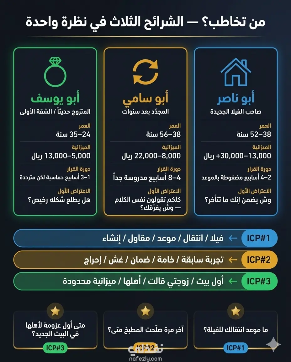 ✦ تحليل 3 شرائح عملاء مثاليين (ICP)