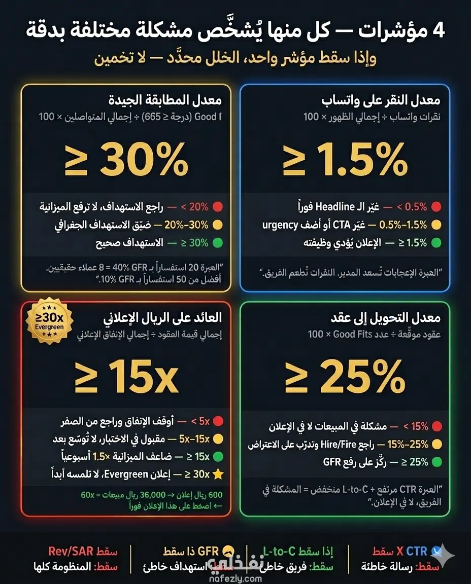 الهدف: إيراد ≥ 15 ريالاً لكل ريال تُنفقه على الإعلان