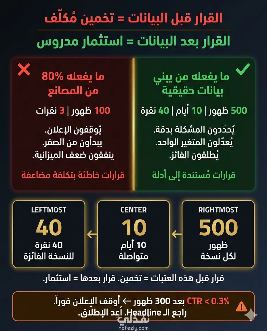 ✦ إطار A/B Testing مع معايير قياس محددة مسبقاً