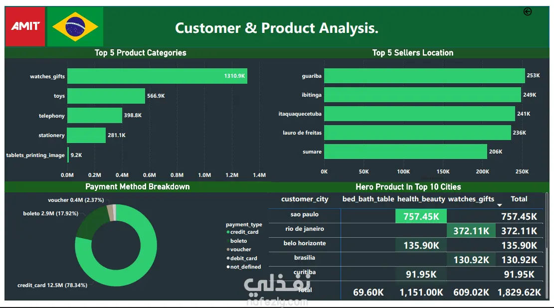 ملخص المشروع: تحليل بيانات التجارة الإلكترونية البرازيلية (Olist)