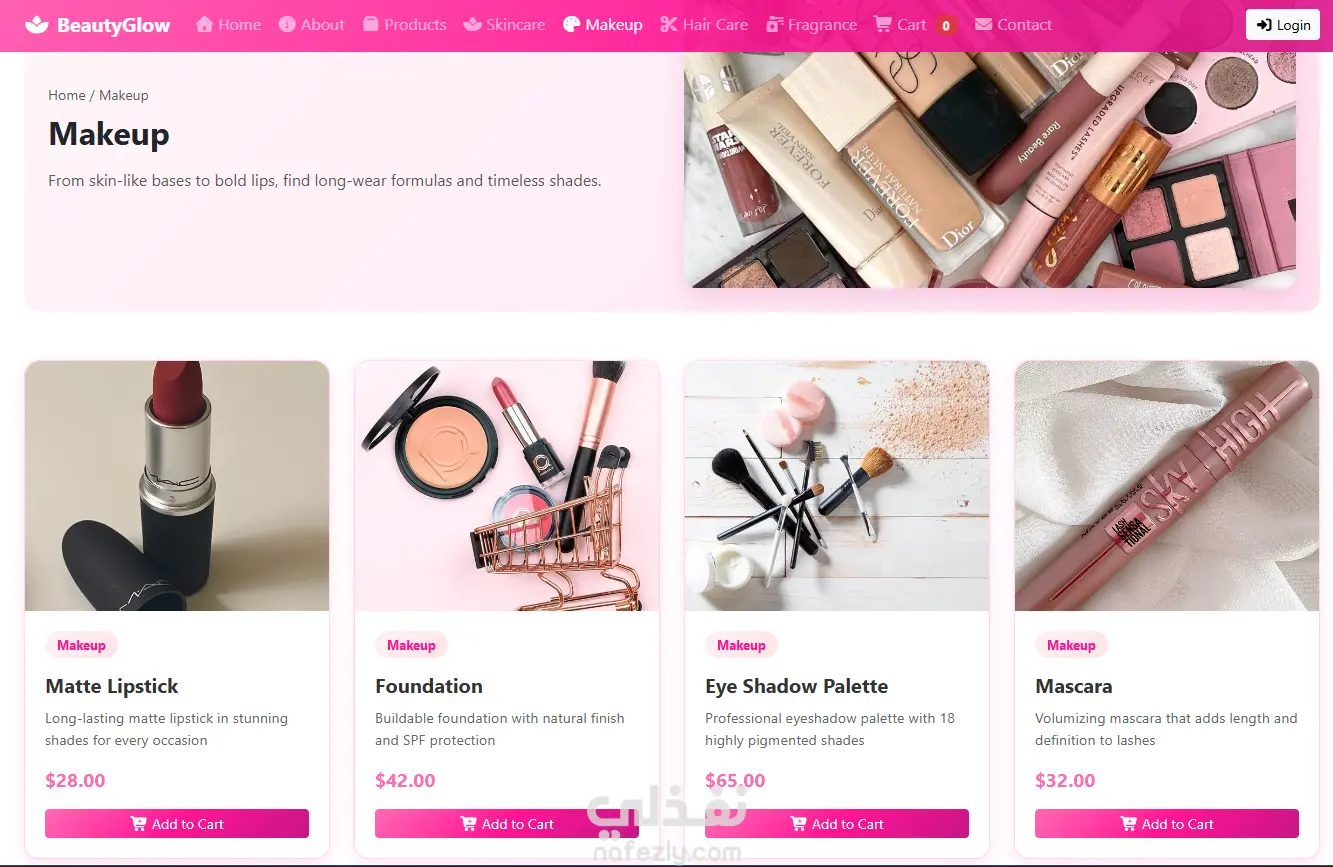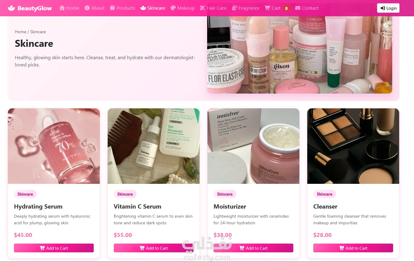 تصميم وتطوير موقع ويب احترافي BeautyGlow