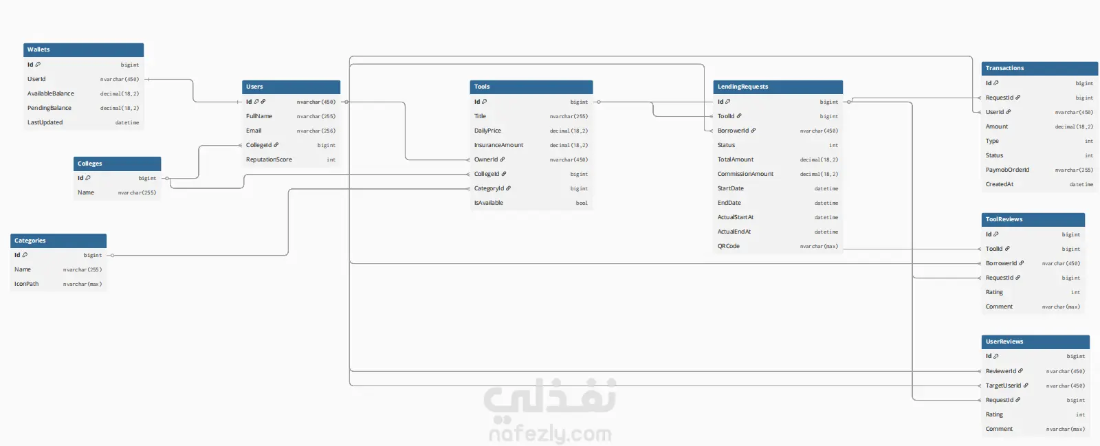 مشروع UniShare هو منصة تهدف لتسهيل تبادل واستئجار الأدوات الهندسية والجامعية بين الطلاب. قمت بتصميم البنية التحتية للنظام (Back-End) مع التركيز على: تصميم قاعدة بيانات مرنة لإدارة المستخدمين، الأدوات، وعمليات الحجز. بناء واجهات برمجية (APIs) منظمة باستخدام ASP.NET Core. تطبيق مفاهيم الـ Clean Architecture لضمان سهولة تطوير وصيانة الكود. توفير بيئة آمنة للتعامل مع البيانات والطلبات.