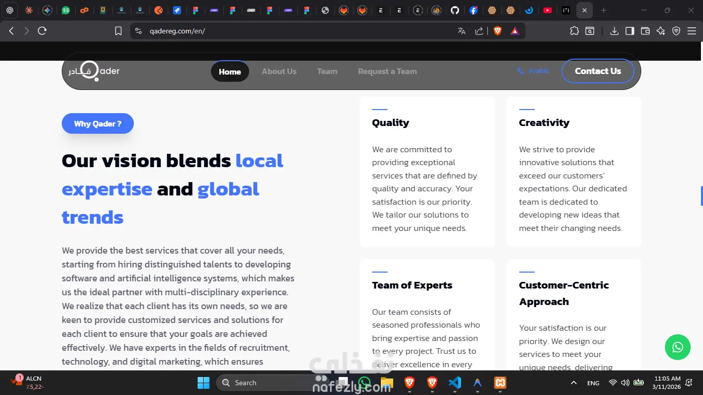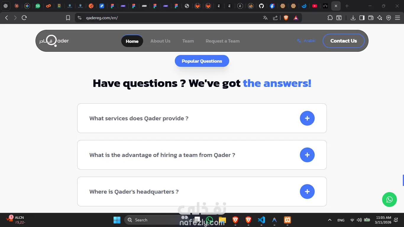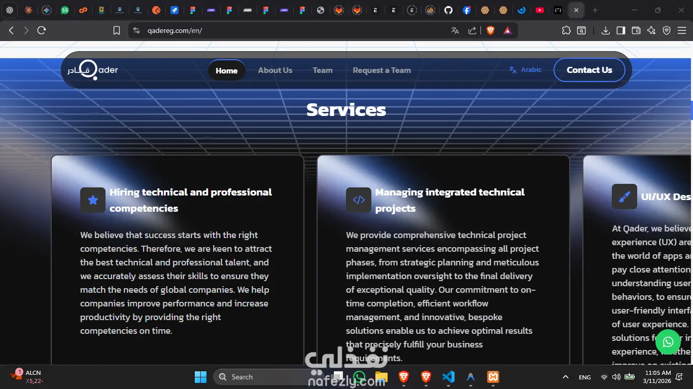موقع Qader هو منصة رقمية متقدمة تهدف إلى تقديم حلول تقنية مبتكرة للشركات والأفراد على حد سواء. يركز الموقع على تطوير أنظمة رقمية تساعد في تحسين الإنتاجية، إدارة العمليات، وتقديم خدمات متكاملة تعتمد على أحدث التقنيات في تطوير الويب والتطبيقات. يتميز Qader بواجهة مستخدم سهلة الاستخدام وتصميم متجاوب يناسب جميع الأجهزة، مع ضمان الأداء السلس والأمان العالي للبيانات. تسعى المنصة إلى تمكين المستخدمين من الوصول إلى حلول تقنية متطورة تساعدهم على تحقيق أهدافهم بكفاءة ومرونة، مع دعم مستمر للتطوير والتوسع بما يتوافق مع احتياجات السوق الحديثة.