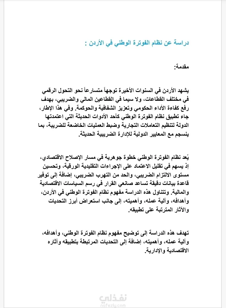 دراسة تحليلية شاملة حول نظام الفوترة الوطني في الأردن.