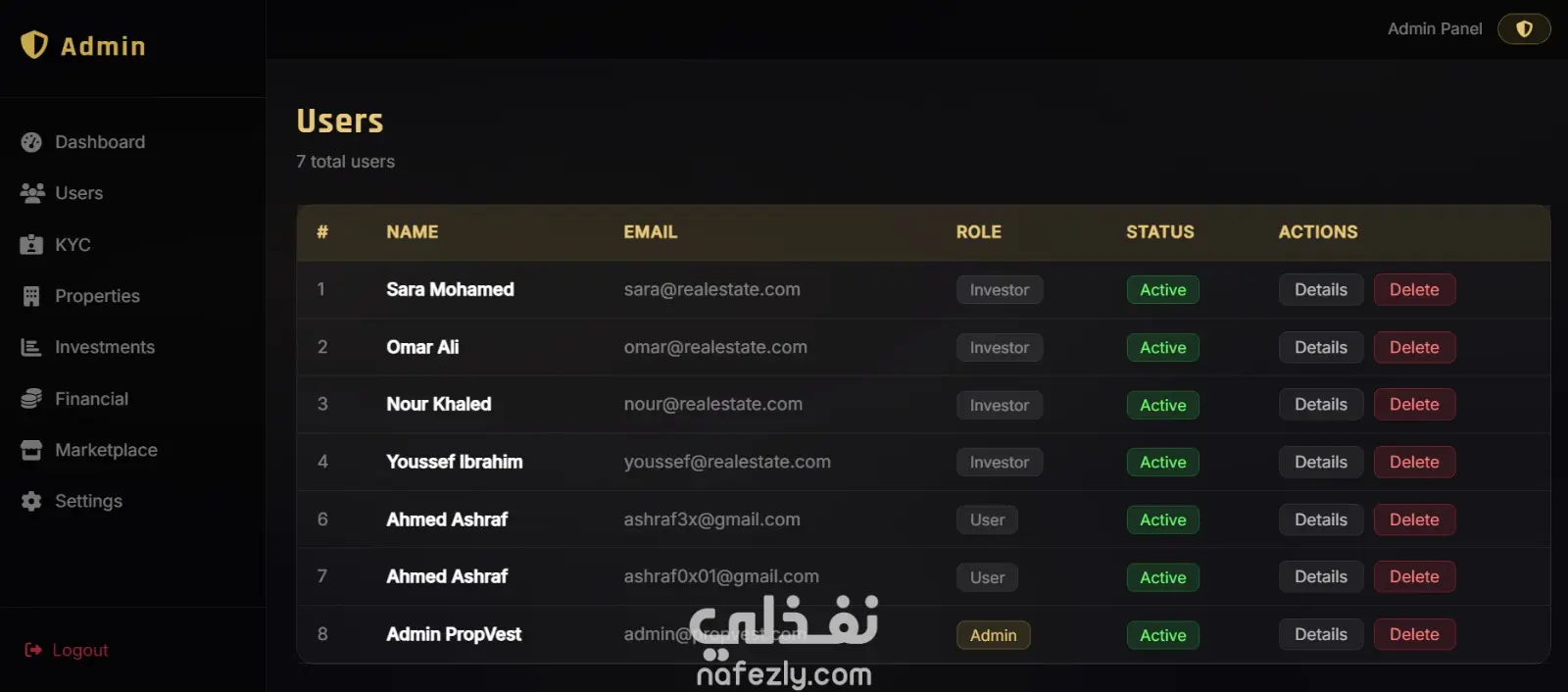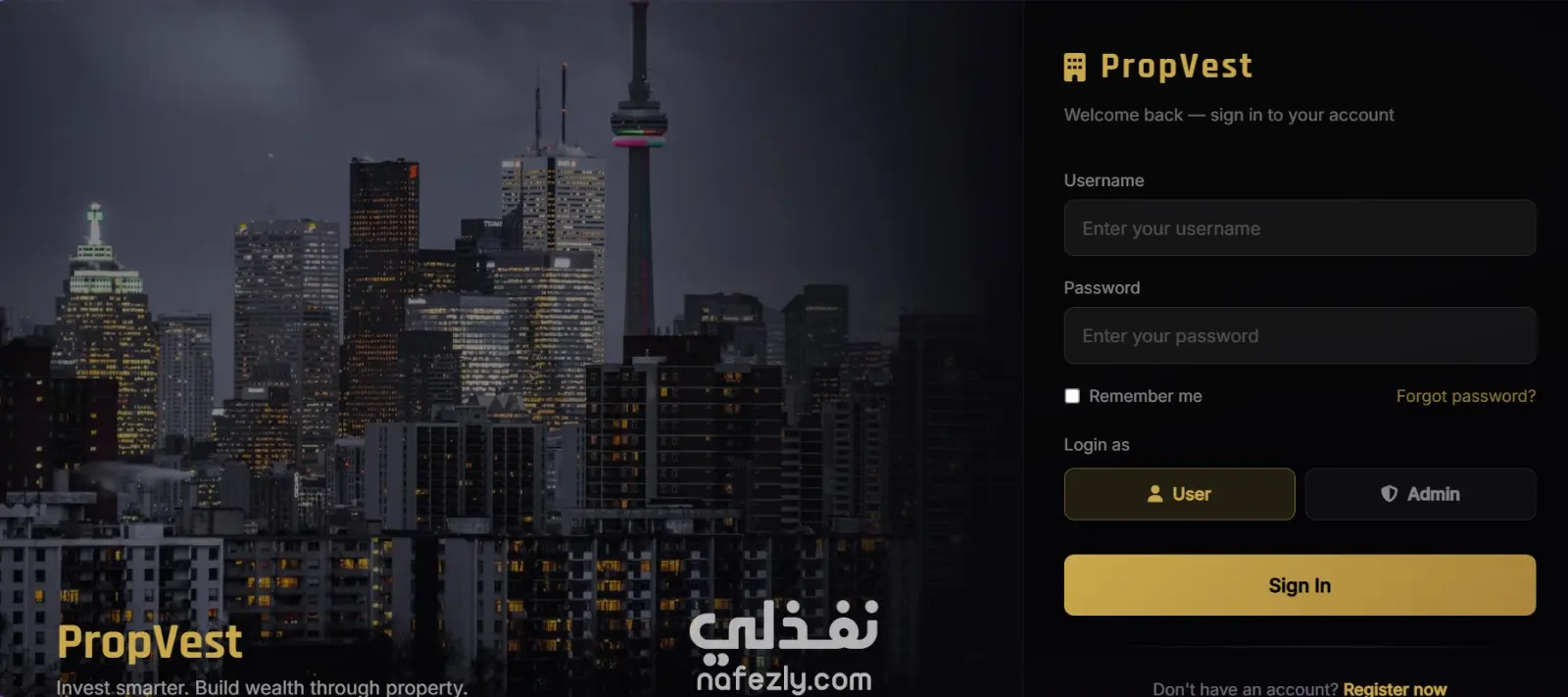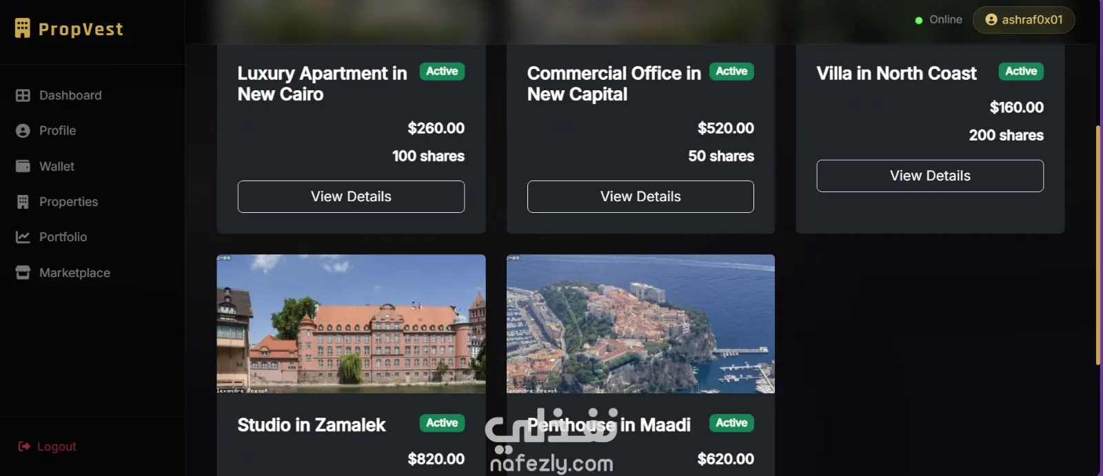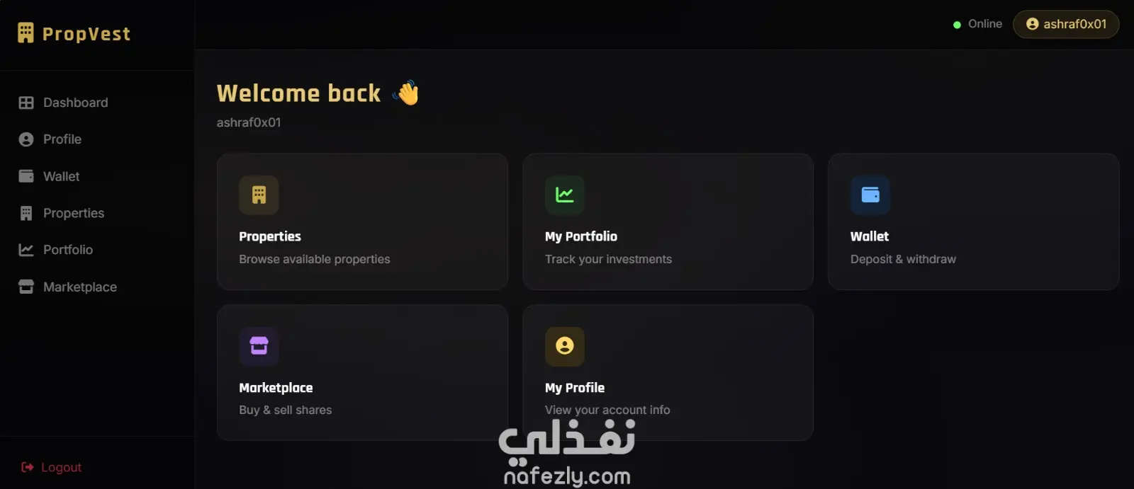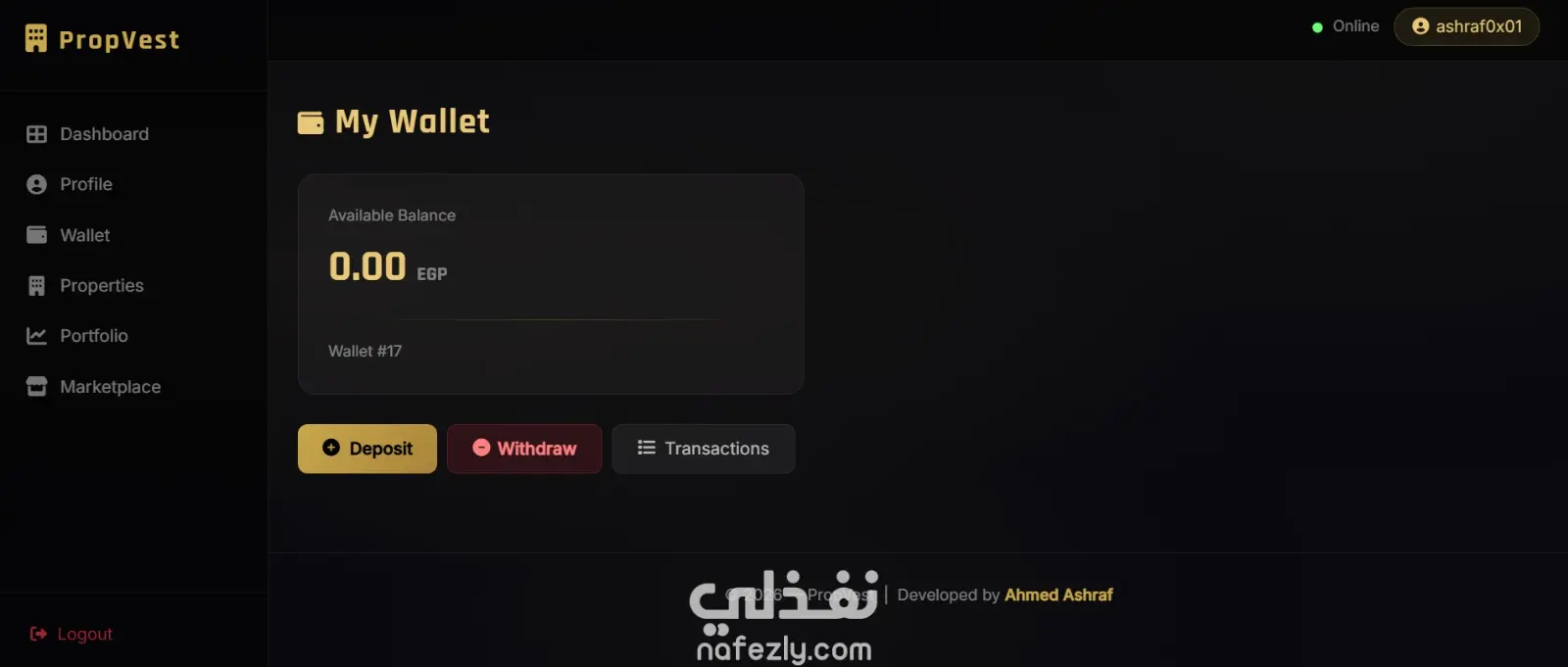 منصة استثمار عقاري متكاملة تتيح للمستخدمين تصفح العقارات والاستثمار في الأسهم وإدارة المحفظة والمحفظة المالية. تشمل لوحة تحكم للأدمن لإدارة المستخدمين والعقارات والاستثمارات وقوائم البيع. مبنية بـ ASP.NET Core MVC و Clean Architecture و Identity Framework مع تصميم عصري داكن.