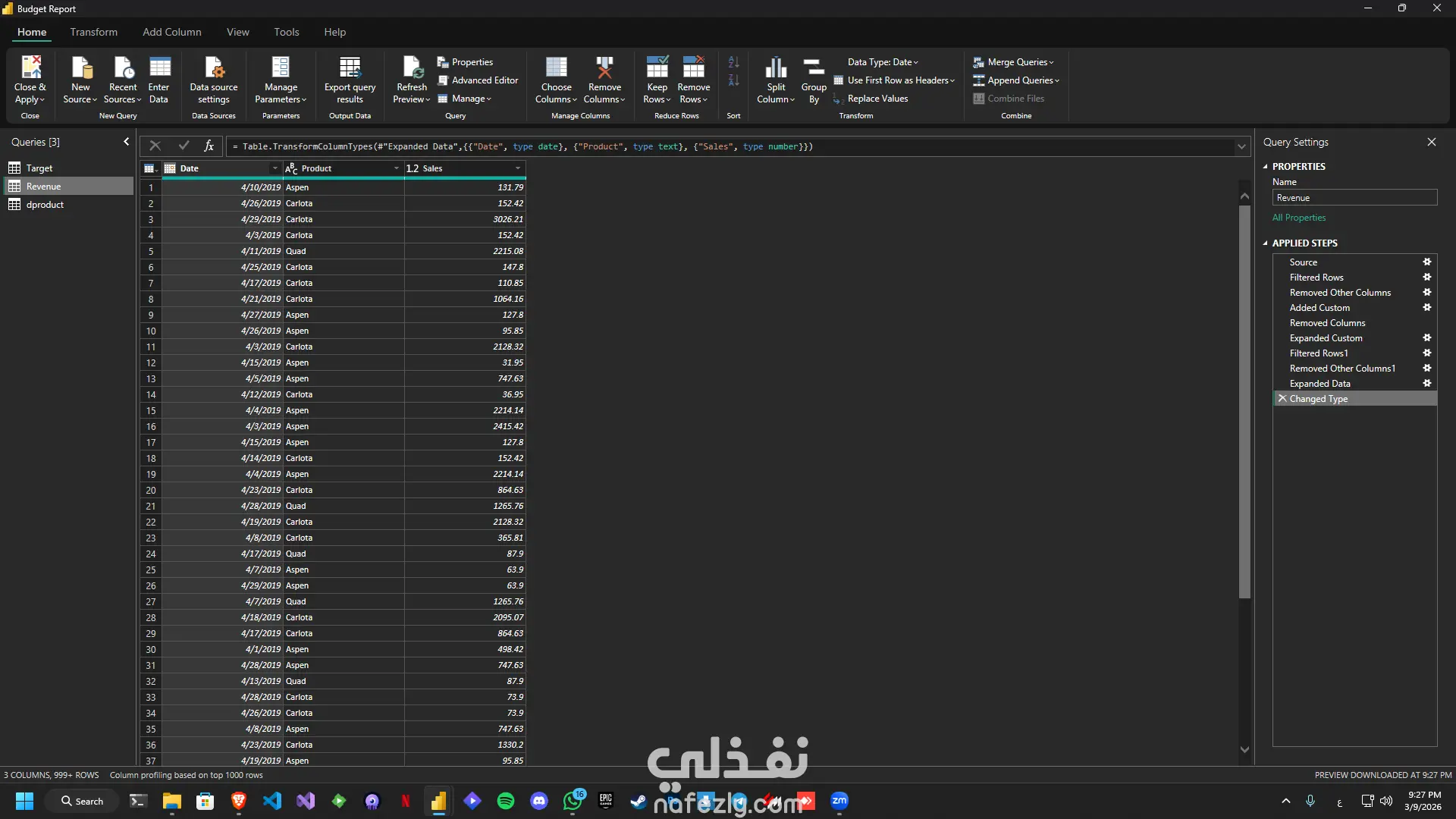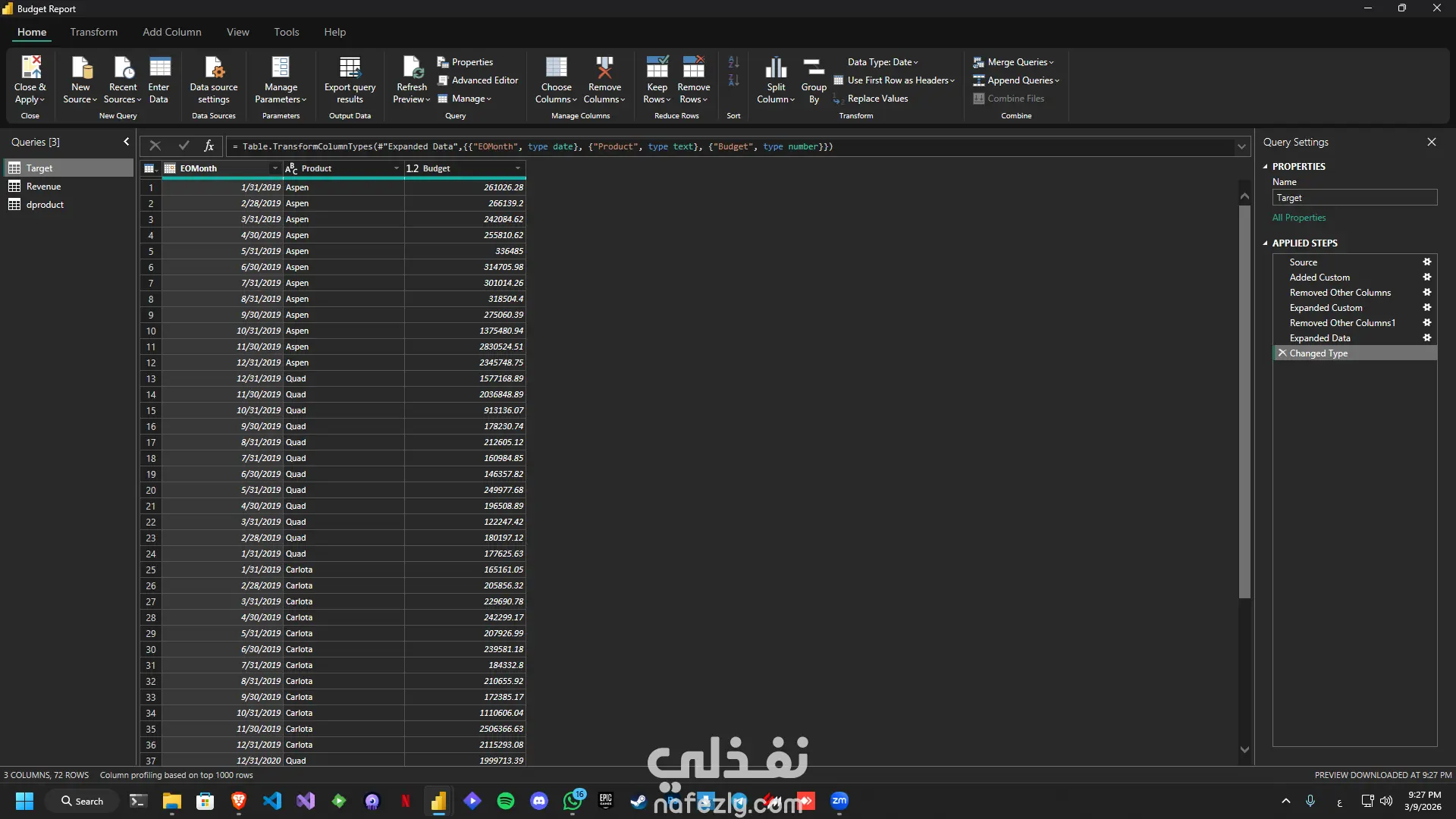 تحليل الأداء الفعلي مقابل الميزانية (Budget vs Actual) باستخدام Power BI هذا المشروع يهدف إلى تحليل ومقارنة الأداء الفعلي للمبيعات مع الميزانية المخططة من خلال بناء Dashboard تفاعلي باستخدام Power BI. يساعد هذا التحليل في فهم مدى تحقيق الأهداف البيعية وتحديد الفروقات بين النتائج الفعلية والخطط الموضوعة مما يدعم اتخاذ قرارات مبنية على البيانات. في مرحلة تنظيف ومعالجة البيانات باستخدام Power Query تم العمل على تصفية البيانات وإزالة الصفوف غير المطلوبة لضمان جودة البيانات. كما تم تصحيح أنواع البيانات مثل التواريخ والقيم الرقمية وتنظيم الجداول بحيث تكون مناسبة للتحليل. تم كذلك إنشاء جدول منفصل للمنتجات عن طريق إزالة القيم المكررة من بيانات المبيعات، بالإضافة إلى تنظيم بيانات الميزانية الشهرية وربطها بالمنتجات والتواريخ. بعد ذلك تم بناء نموذج البيانات باستخدام أسلوب Star Schema حيث تم استخدام جدول المبيعات كـ Fact Table يحتوي على القيم الفعلية للمبيعات، بينما تم استخدام جدول الميزانية كجدول Target لمقارنة الأداء الفعلي مع القيم المستهدفة. كما تم إنشاء جداول أبعاد مثل جدول التاريخ Calendar وجدول المنتجات Product وربط الجداول بعلاقات One-to-Many لضمان كفاءة التحليل وإمكانية التصفية بين الجداول. تم إنشاء مجموعة من المقاييس باستخدام DAX لقياس الأداء بشكل دقيق، حيث تم حساب إجمالي المبيعات الفعلية Revenue، وإجمالي الميزانية Target، بالإضافة إلى حساب نسبة تحقيق الهدف Achievement %. كما تم حساب الفرق بين القيم الفعلية والمخططة باستخدام Variance وكذلك حساب نسبة الانحراف Variance % لمعرفة مدى الاقتراب أو الابتعاد عن الأهداف المحددة. تم تصميم Dashboard تفاعلية لعرض أهم مؤشرات الأداء بطريقة واضحة وسهلة الفهم. تتضمن اللوحة بطاقات KPI لعرض إجمالي الإيرادات وإجمالي الميزانية ونسبة تحقيق الهدف إضافة إلى قيمة الانحراف ونسبته. كما تحتوي اللوحة على جدول تحليلي يعرض الأداء الشهري ويقارن بين الإيرادات والميزانية مع إظهار نسبة تحقيق الهدف والانحراف لكل شهر. كما تم إضافة عدة مخططات بصرية لتحليل البيانات بشكل أعمق، مثل مخطط Donut لعرض توزيع الإيرادات حسب المنتجات المختلفة، ومخطط Gauge لقياس نسبة تحقيق الهدف بشكل بصري سريع، بالإضافة إلى مخطط Combo يوضح تطور الإيرادات والميزانية ونسبة تحقيق الهدف عبر الأشهر. تتضمن لوحة التحكم أيضًا عناصر تصفية تفاعلية تسمح بتحليل البيانات حسب السنة أو الربع السنوي أو الشهر وكذلك حسب المنتج، مما يتيح للمستخدم استكشاف البيانات بسهولة والتركيز على أجزاء محددة من الأداء.