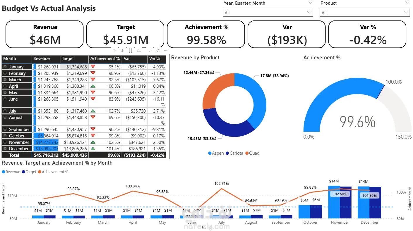 تحليل Budget vs Actual ومتابعة الأداء المالي باستخدام Dashboard تفاعلي