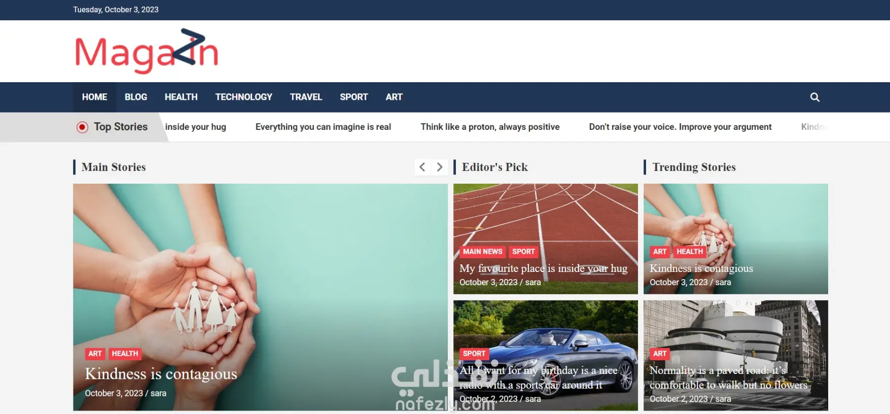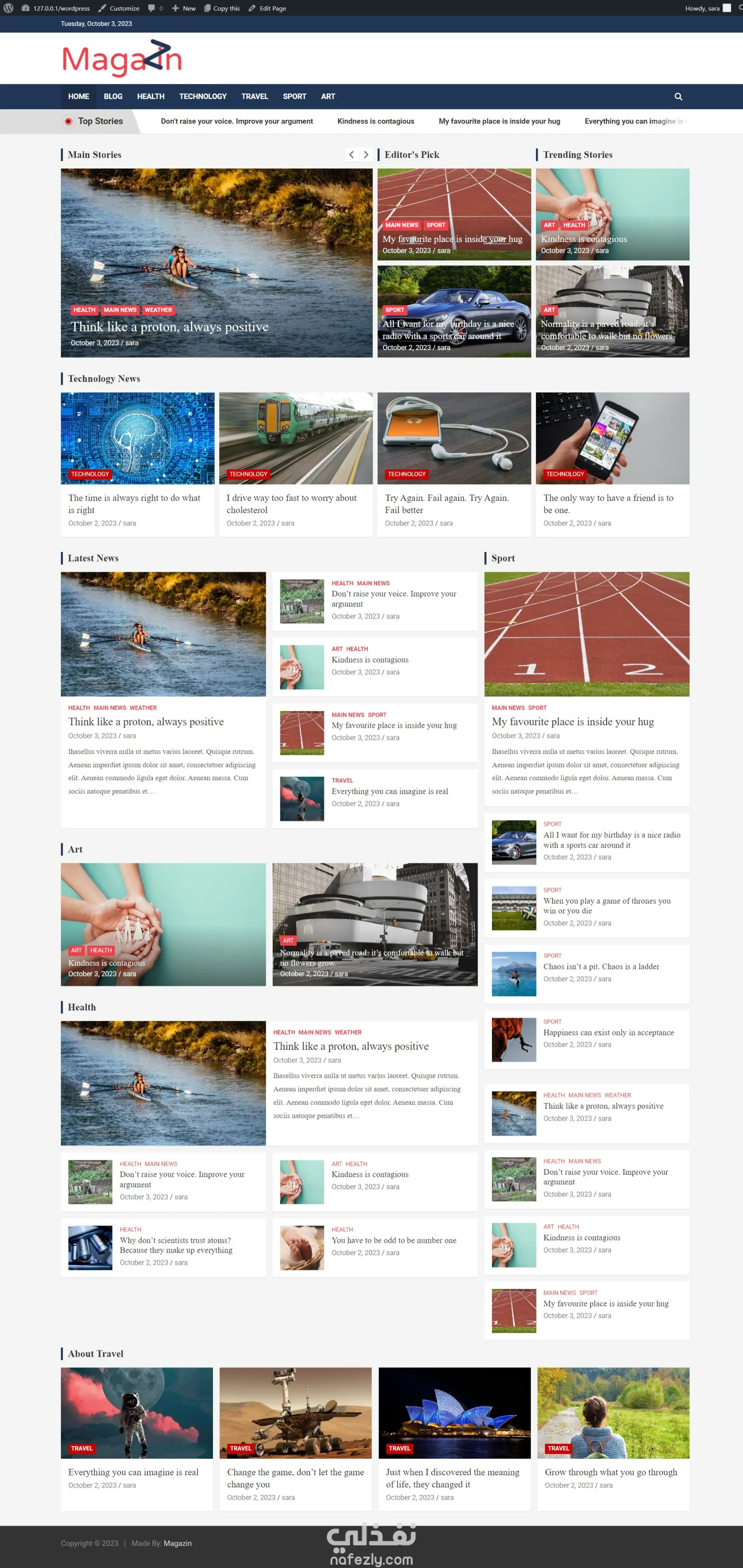 موقع مجلة اخبارية باستخدام الووردبريس والثيم نيوكارت.