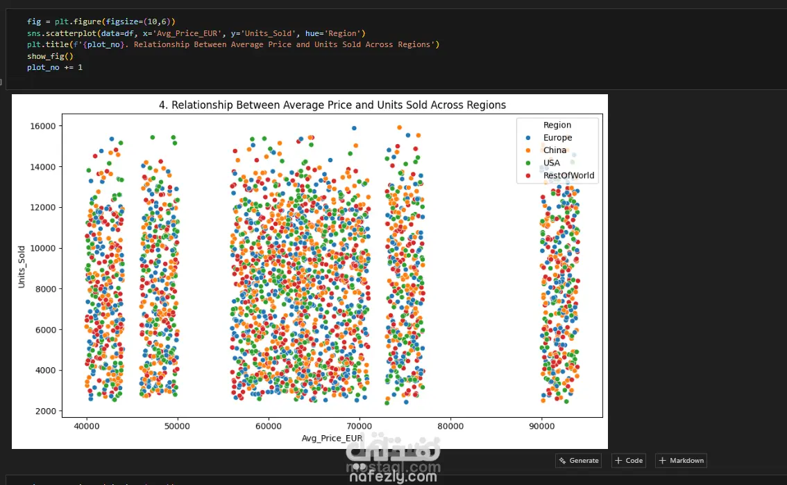 كما تم استخدام الرسوم البيانية لتوضيح الاتجاهات والعلاقات بين المتغيرات المختلفة مثل عدد السيارات المباعة ومتوسط السعر وبعض المؤشرات الاقتصادية.