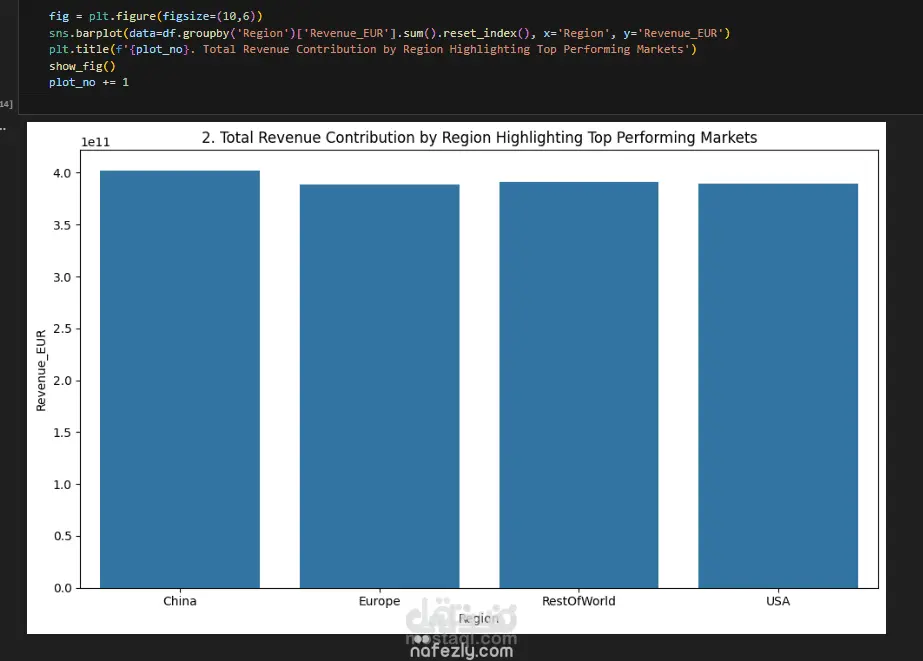 بدأت بتنظيف البيانات ومعالجة القيم المفقودة وتجهيزها للتحليل باستخدام لغة Python. بعد ذلك قمت بإجراء تحليل استكشافي للبيانات لفهم توزيع المبيعات ومتوسط الأسعار وأداء المبيعات في المناطق المختلفة.