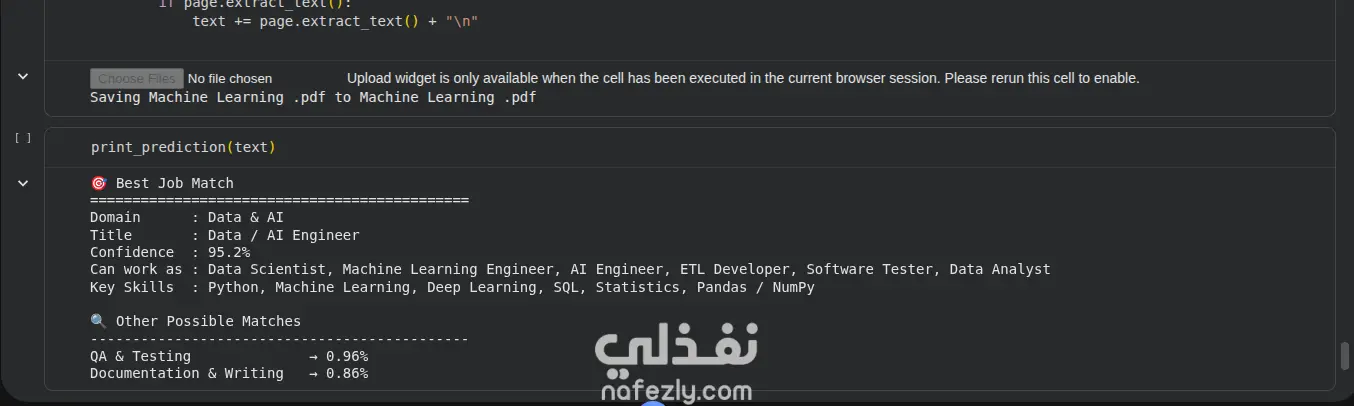 Built an AI-powered Resume (CV) Classification system using NLP and Python. The model analyzes resume text, applies preprocessing and TF-IDF vectorization, and classifies candidates into job categories such as Machine Learning, Web Development, AI, Full Stack, and Data Analysis. Trained and evaluated multiple ML algorithms to improve accuracy. The solution can be integrated into HR systems and applicant tracking platforms.