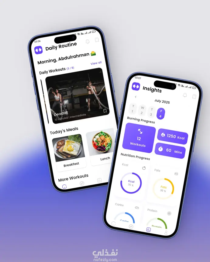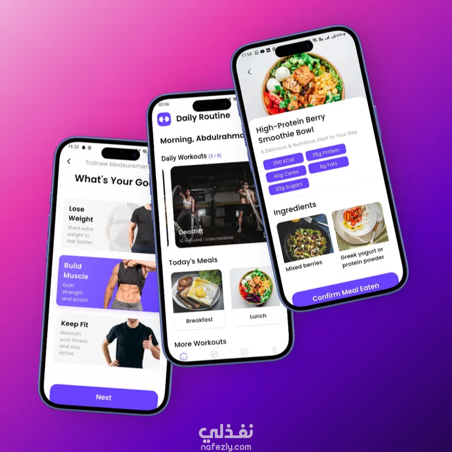 مراقب اللياقة البدنية (Fit Monitor) هو تطبيق موبايل متكامل للياقة البدنية والتغذية تم تطويره باستخدام Flutter لبناء واجهة مستخدم حديثة وسريعة تعمل بسلاسة على الأجهزة المختلفة. يهدف التطبيق إلى تقديم تجربة مستخدم سهلة وفعّالة تساعد المستخدمين على متابعة صحتهم ولياقتهم من خلال خطط تدريب وتغذية مخصصة. ركزت في هذا المشروع على تطوير تطبيق موبايل عالي الأداء مع بنية كود نظيفة وقابلة للتوسع باستخدام Clean Architecture لضمان سهولة الصيانة وإضافة الميزات مستقبلاً. كما تم بناء واجهة المستخدم بطريقة تضمن تجربة استخدام سلسة وتفاعل سريع مع البيانات. تم ربط التطبيق بخدمات Backend مبنية باستخدام Spring Boot لتوفير نظام مصادقة آمن وإدارة بيانات المستخدمين، بالإضافة إلى التكامل مع خدمات ذكاء اصطناعي لتوليد توصيات التدريب والتغذية. ما يميز هذا المشروع تقنيًا: 1. تطوير تطبيق موبايل باستخدام Flutter وDart مع تصميم واجهات حديثة وسهلة الاستخدام. 2. استخدام flutter_bloc لإدارة الحالة وتنظيم تدفق البيانات داخل التطبيق. 3. تطبيق Clean Architecture لفصل طبقات التطبيق وتحسين قابلية الصيانة والتطوير. 4. التكامل مع REST APIs للتعامل مع البيانات والمصادقة. 5. تحسين الأداء وتجربة المستخدم من خلال تصميم واجهات تفاعلية وسريعة الاستجابة. يوضح هذا المشروع خبرتي في تطوير تطبيقات موبايل احترافية باستخدام Flutter مع بناء بنية تطبيق قوية وقابلة للتوسع.
