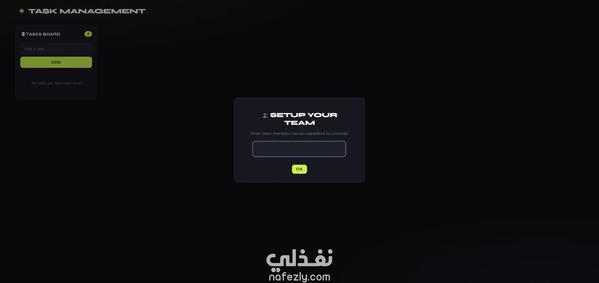 تطبيق ويب تفاعلي لإدارة مهام الفريق، مبني بـ HTML و CSS و JavaScript.