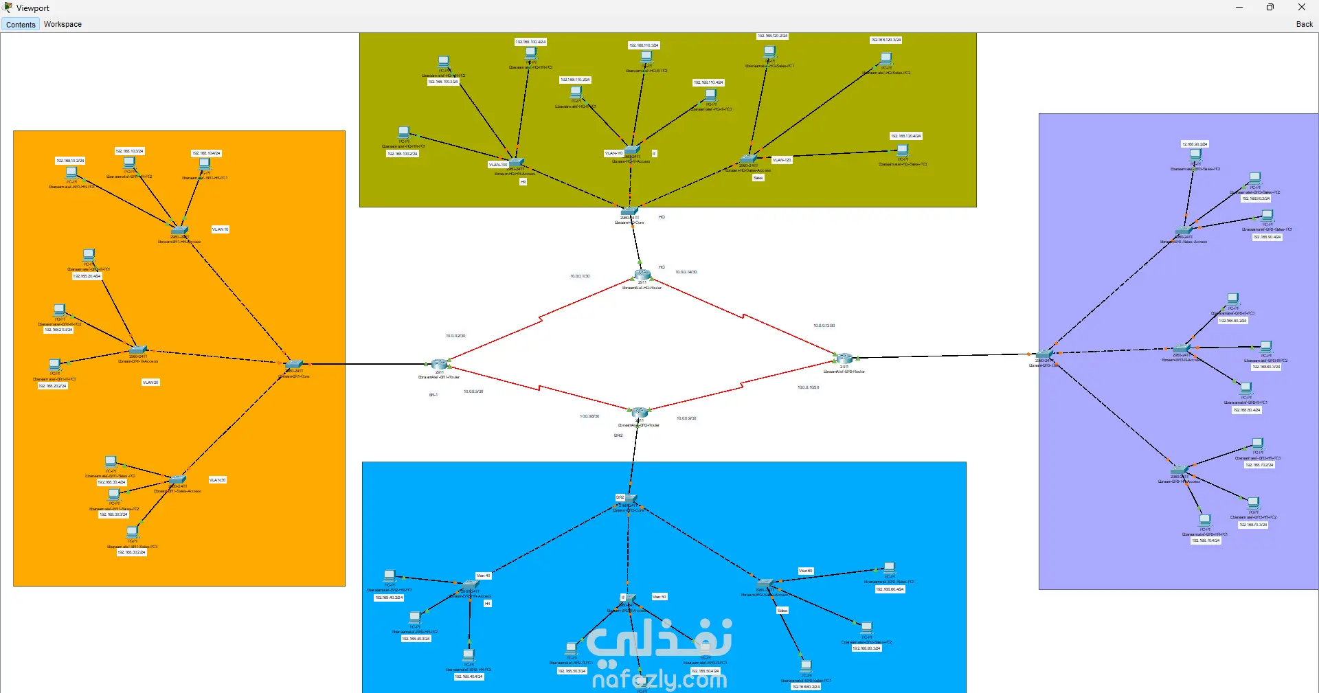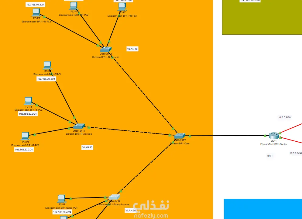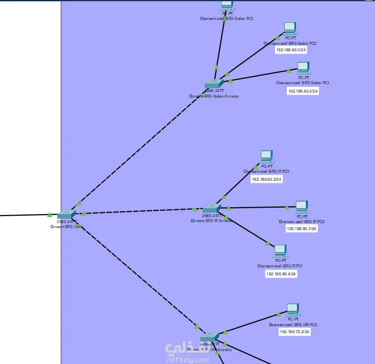 تصميم وتنفيذ شبكة احترافية متعددة الفروع باستخدام Cisco Packet Tracer