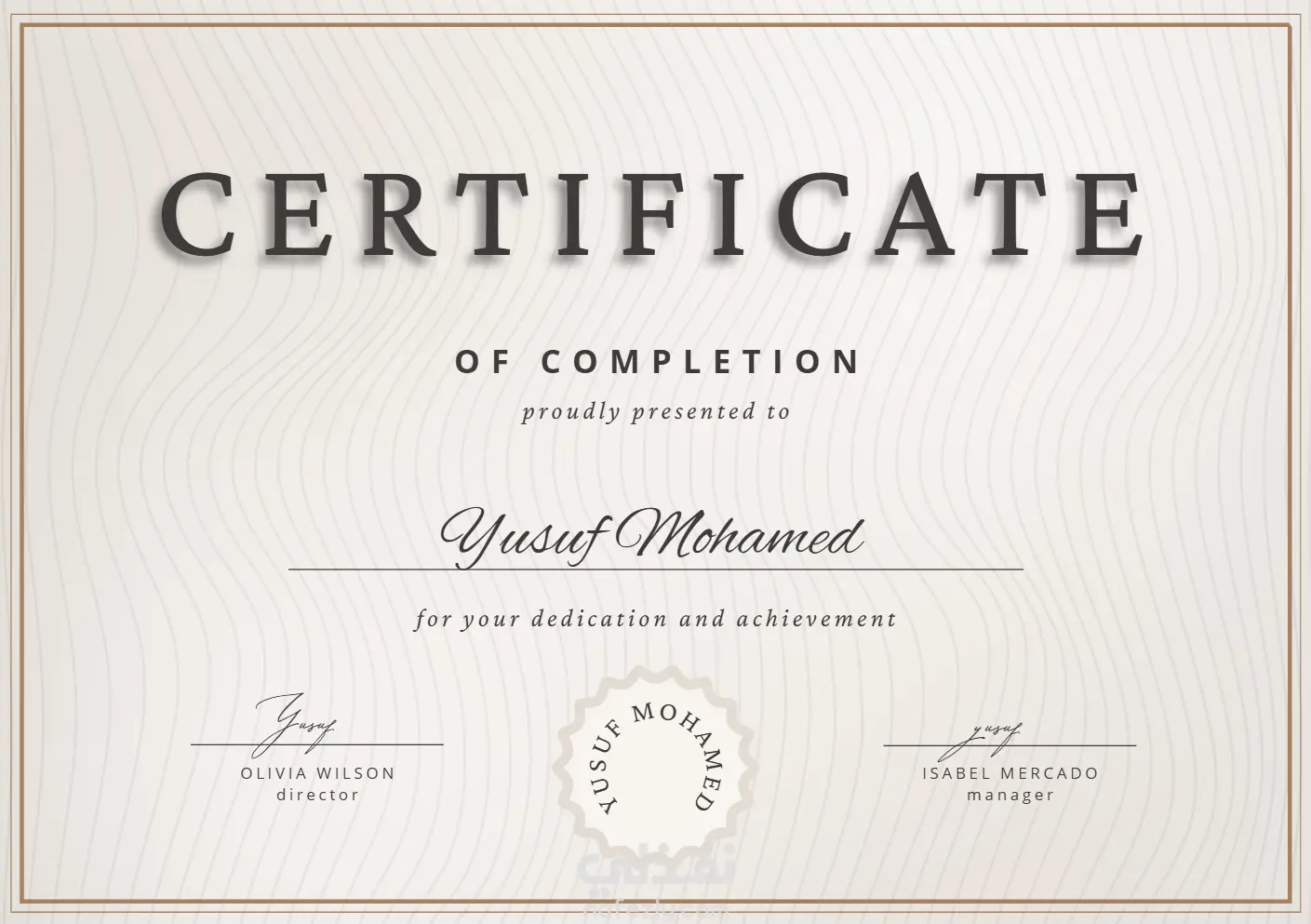 تصميم شهادات تقدير للطلاب والدورات التدريبية والفعاليات، بأسلوب أنيق وواضح. الشهادة جاهزة للطباعة أو الاستخدام الرقمي، مع إمكانية تعديل النصوص والأسماء والتواريخ وتغيير الألوان حسب الحاجة.