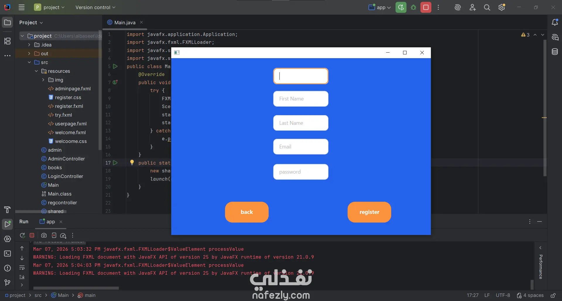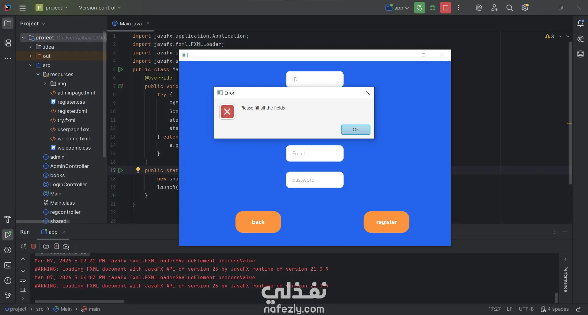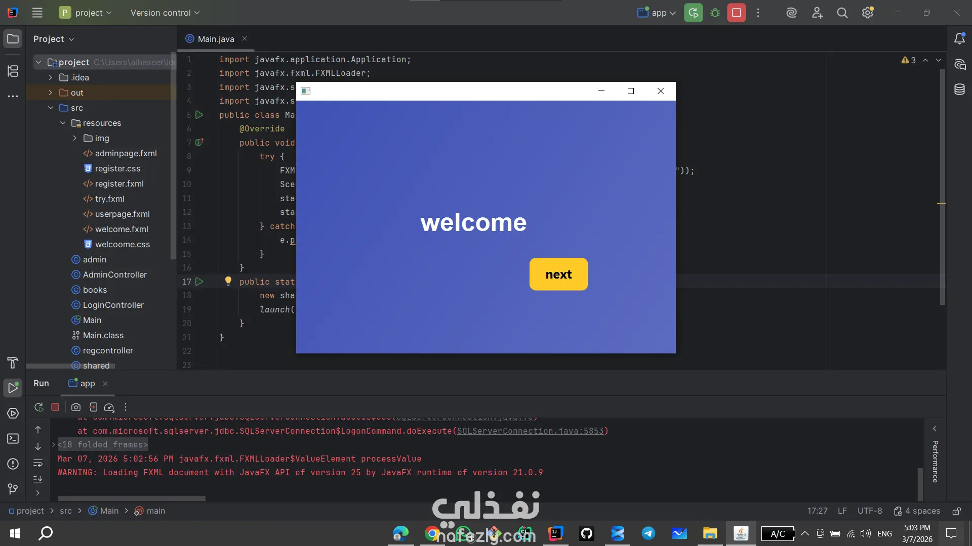 ام إدارة المكتبة الذكي (Library Management System) هو مشروع يهدف إلى تسهيل العمليات الإدارية داخل المكتبات وتحويلها إلى نظام رقمي فعال. تم تصميم النظام باستخدام لغة Java مع واجهات رسومية متطورة تعتمد على تقنية JavaFX، مما يوفر تجربة مستخدم سلسة وسهلة التعامل. تم تطوير هذا النظام لخدمة فئتين من المستخدمين: الإدارة (Admins) والمستفيدين (Users)، مع الربط المباشر بقاعدة بيانات SQL Server لضمان دقة وتأمين البيانات. أهم المميزات: إدارة الكتب: يتيح النظام للمسؤولين إضافة كتب جديدة، وتحديث عدد النسخ المتاحة، أو البحث عن الكتب حسب الفئة (برمجة، قواعد بيانات، روايات). عمليات الاستعارة والرد: يوفر النظام آلية دقيقة لاستعارة الكتب مع التحقق من هوية المستخدم، كما يتضمن نظاماً آلياً لحساب الغرامات في حال التأخر عن موعد التسليم. إدارة المستخدمين: يمكن للمسؤولين حذف حسابات المستخدمين (بشرط إعادة كافة الكتب المستعارة أولاً)، بالإضافة إلى نظام تسجيل دخول وتسجيل حسابات جديد آمن. تنبيهات ذكية: يتميز النظام بأسلوب تفاعلي، حيث يقدم تنبيهات تنبيهية وتحذيرية بلمسة فكاهية أحياناً لتعزيز تجربة المستخدم. فريق العمل هذا المشروع هو ثمرة تعاون جماعي متميز، حيث تم تنفيذه بواسطة تيم (Team) من المطورين الذين عملوا على ربط مفاهيم البرمجة الكائنية (OOP) بقواعد البيانات والواجهات الرسومية لإنتاج حل تقني متكامل.