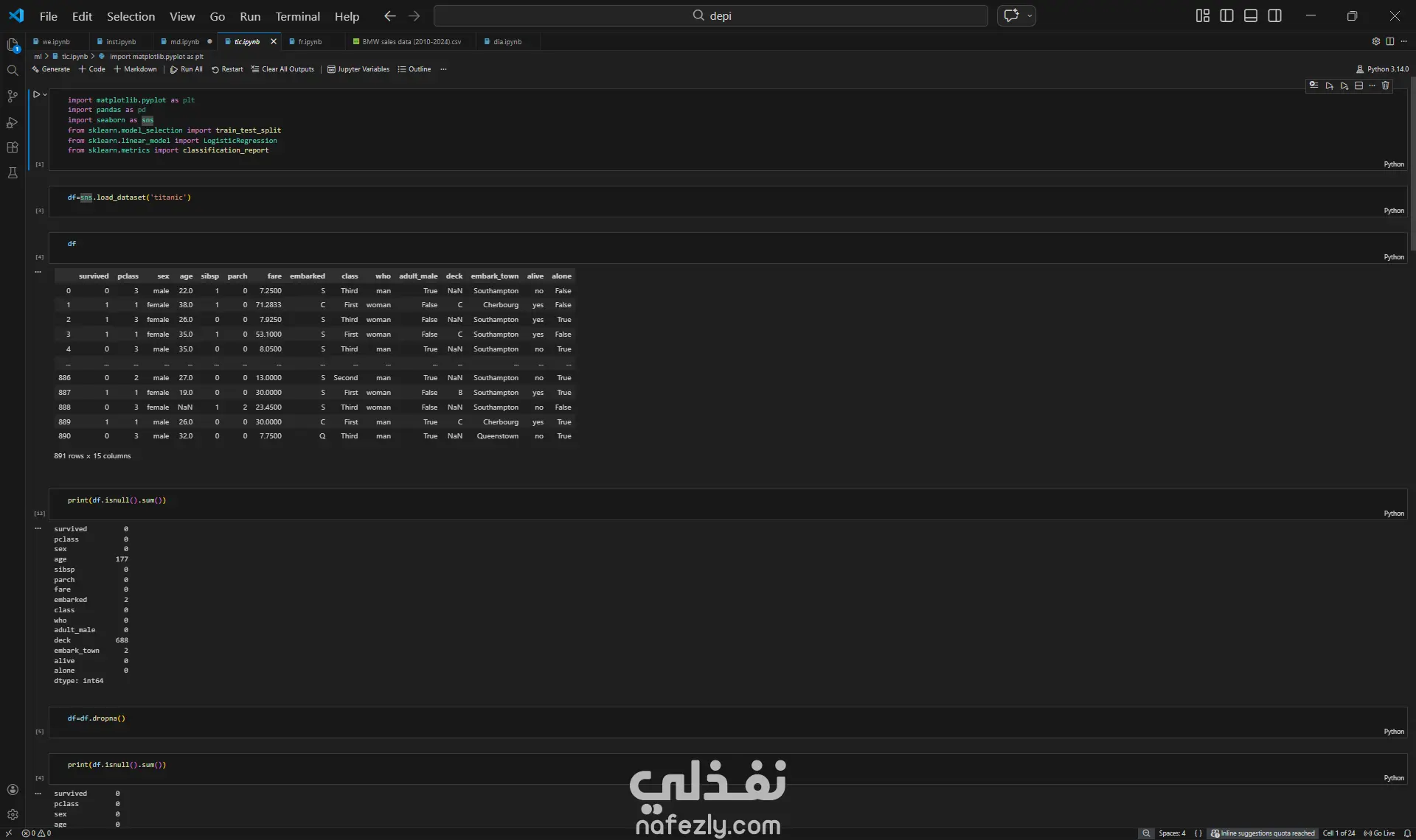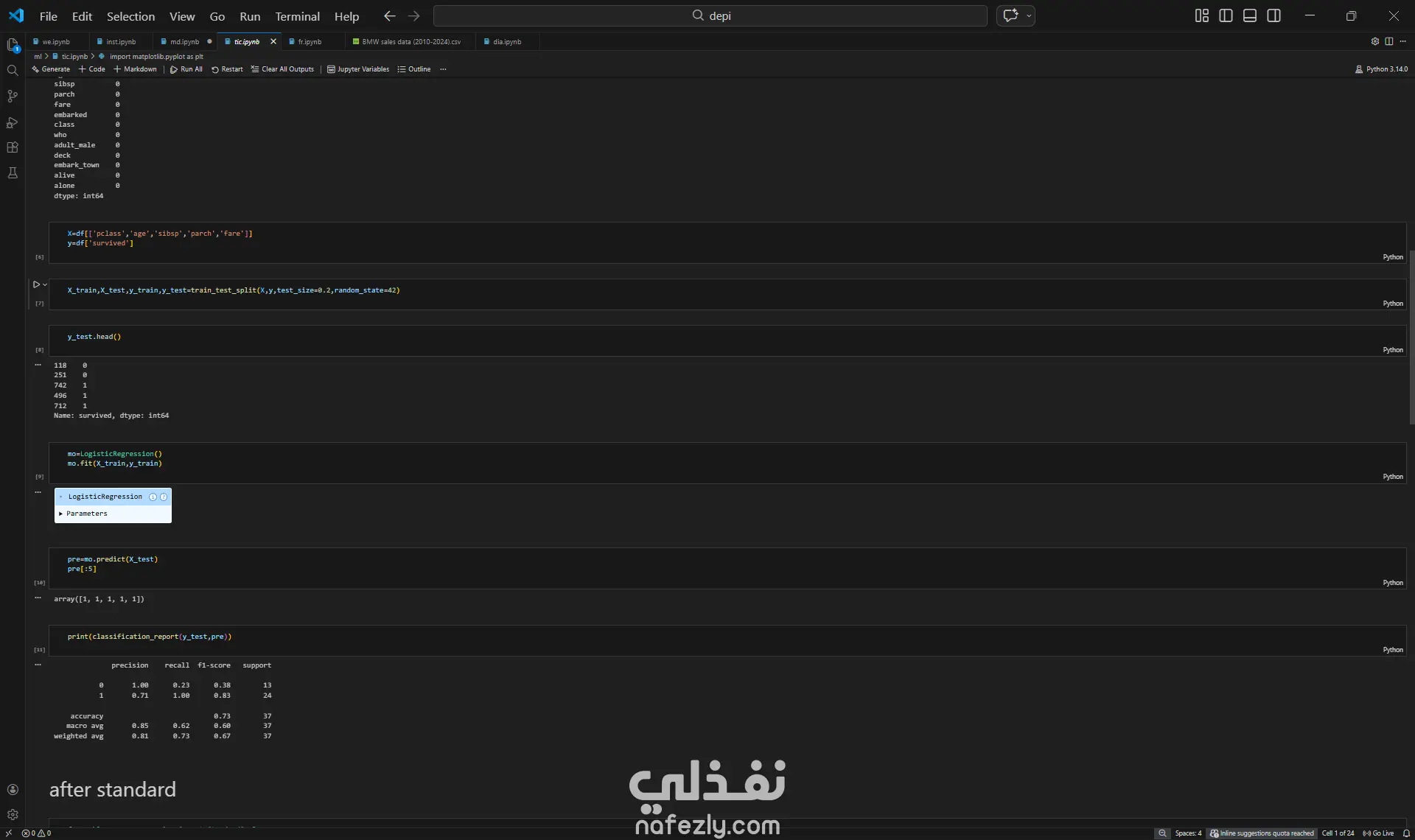 الكششف عن الناجيين فى سفينة تيتانيك بناءا على الموضع الاجتماعى و عدد العائلة و السن